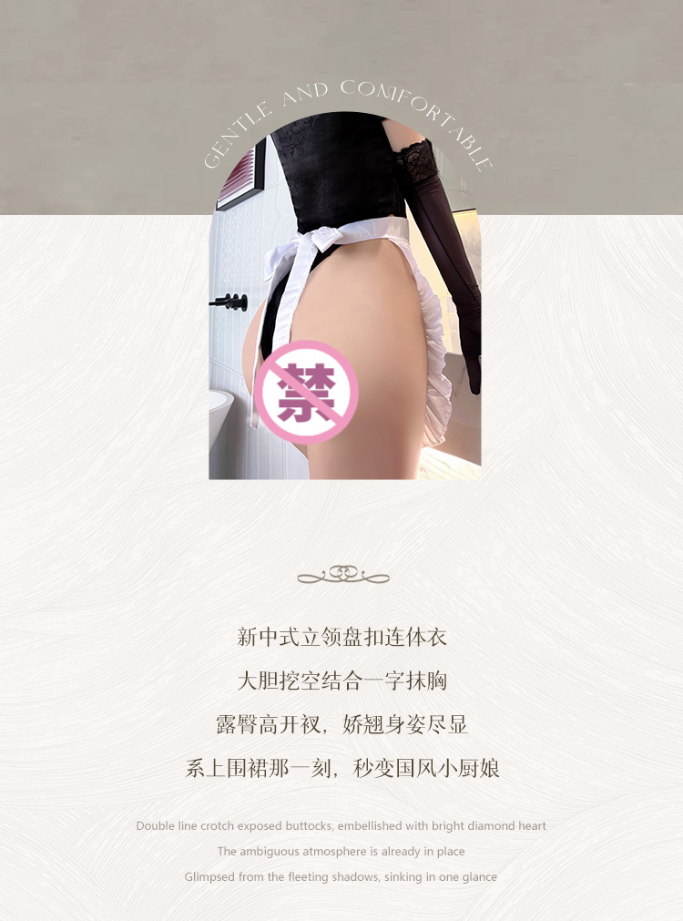 ◆奶呼厨娘◆黑+白【连体衣+抹胸+围裙】 6977890239497(限价48)