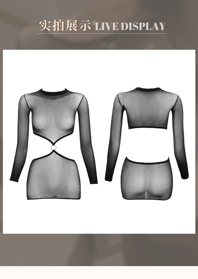 시스루 분리형 히프 백 세트 원피스 스타킹 가슴을 드러내는 블랙 실크 감성 속옷 7527