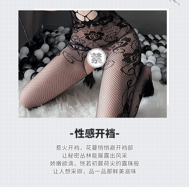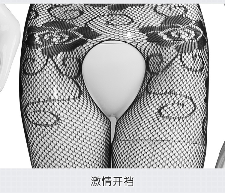 섹시 란제리 여성용 투명 펀칭 자카드 오픈 실크 스타킹 블랙 망사 7509