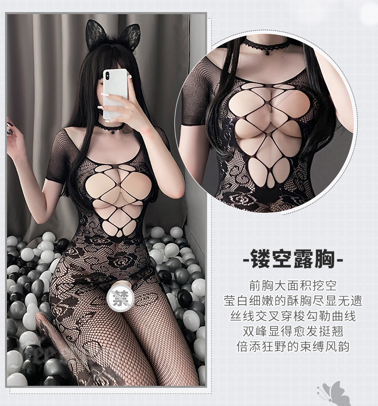 섹스 란제리 민소매 레이스 섹시 홀터넥 펀칭 스타킹 전신 망사 섹스 용품 8961