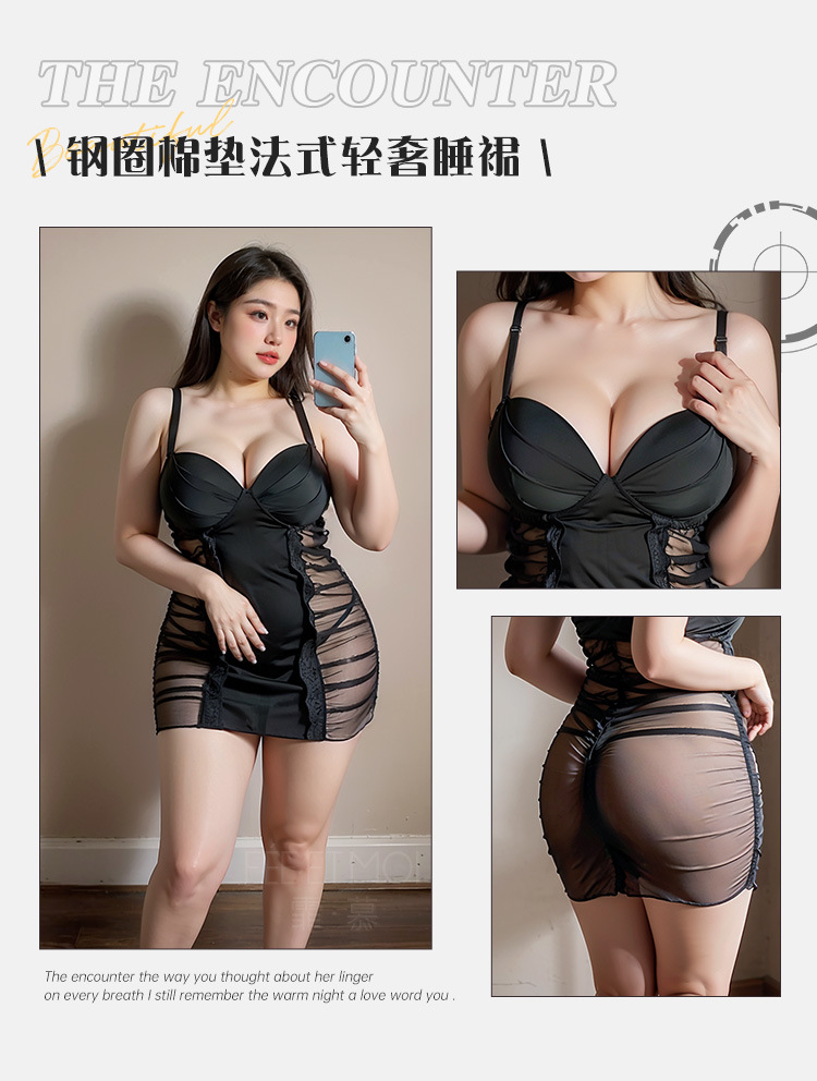 튜브 쿠션 프렌치 슬립 5167 섹시 블라우스 섹시한 라지 사이즈 가슴팍이 드러나는 시스루 드레스