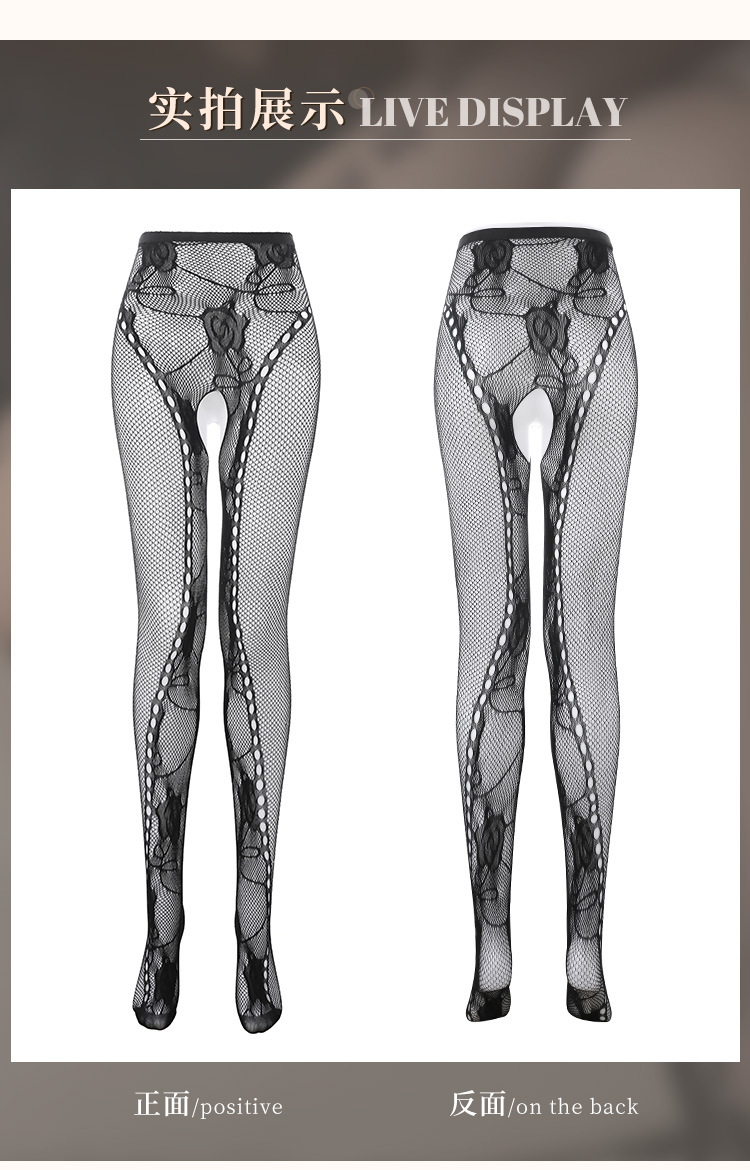 장미 자카드 밑단망사 스타킹 7319 섹시 언더웨어 펀칭 블랙 스타킹으로 착용
