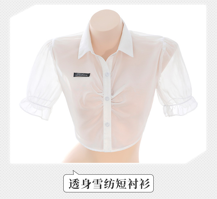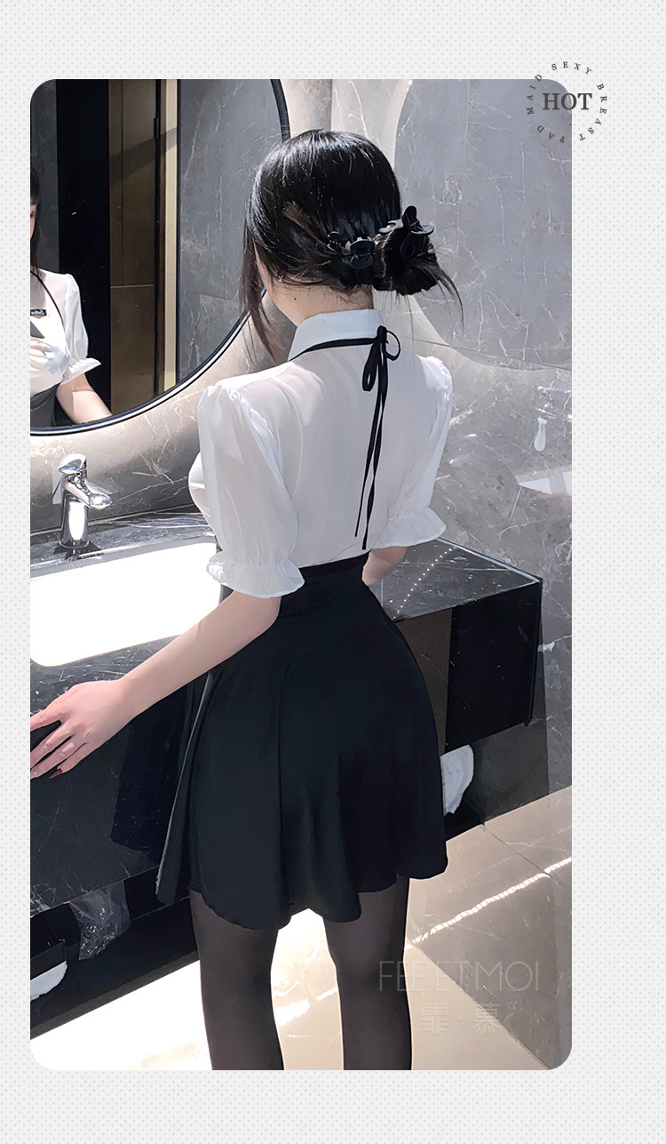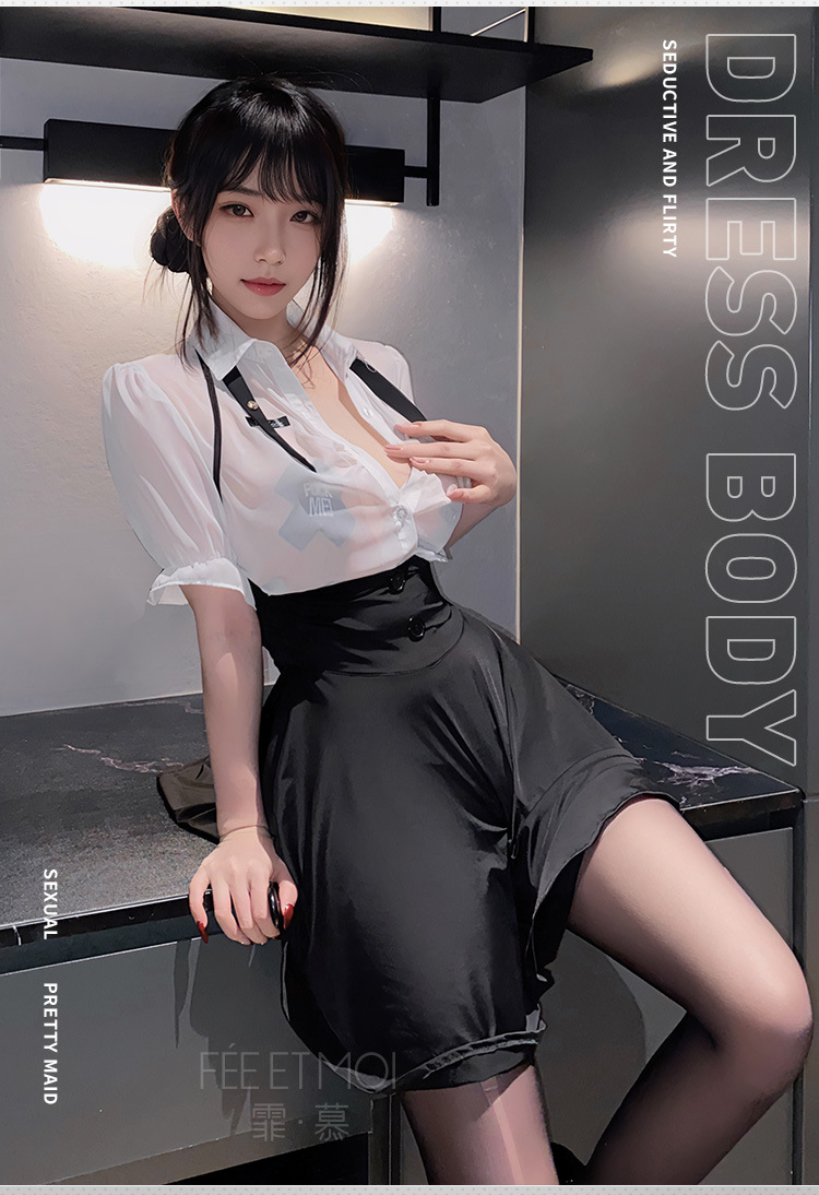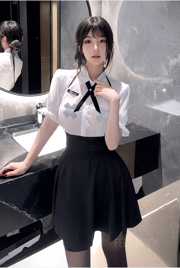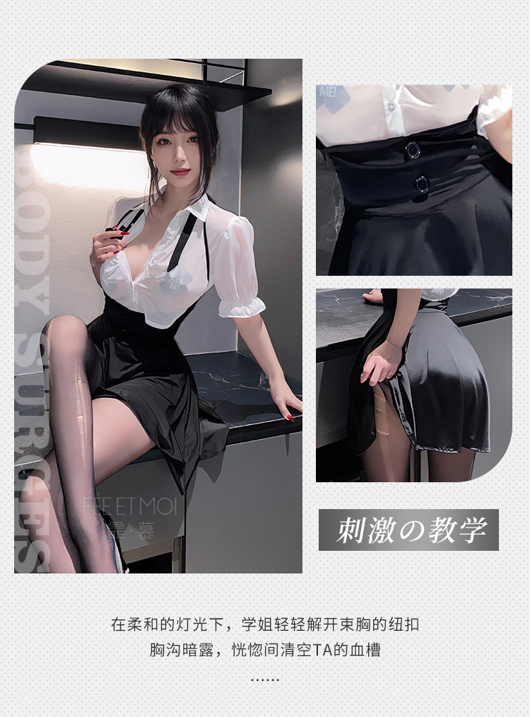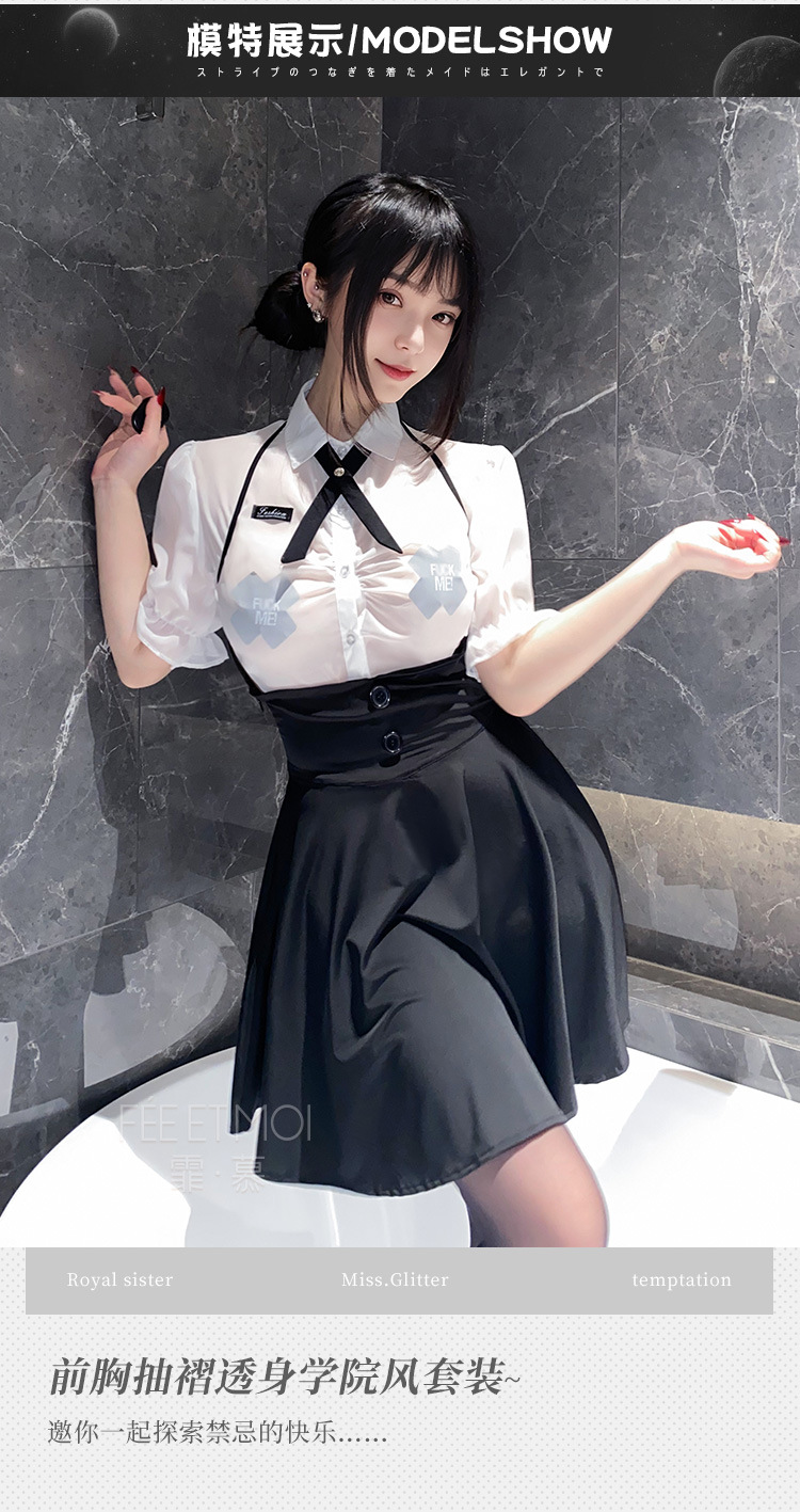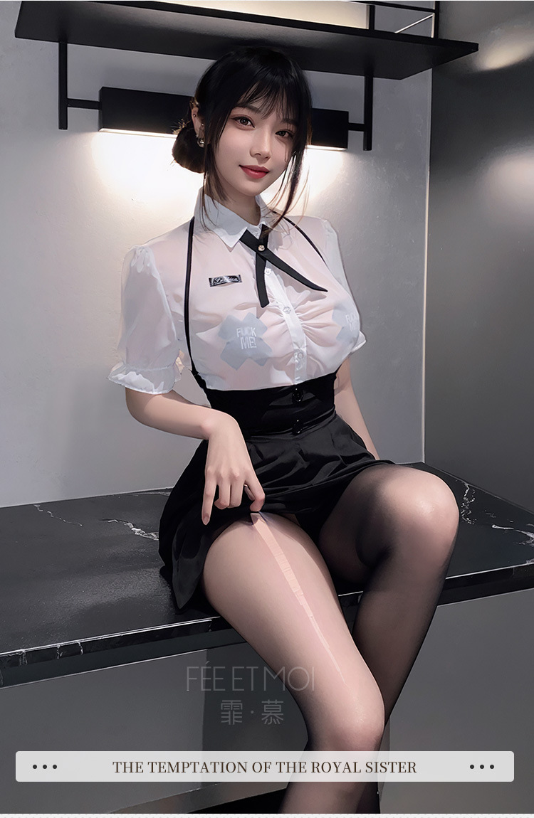 앞가슴 주름살이 비치는 스쿨 룩 슈트 섹시한 속옷 섹시 시스루 유니폼