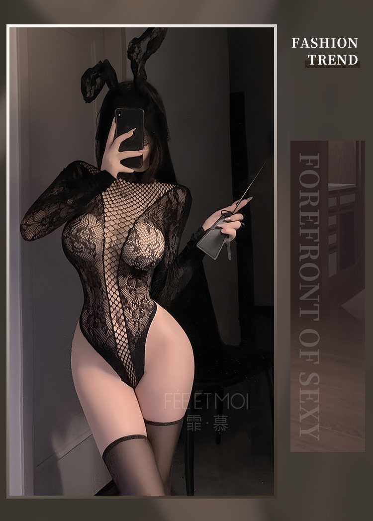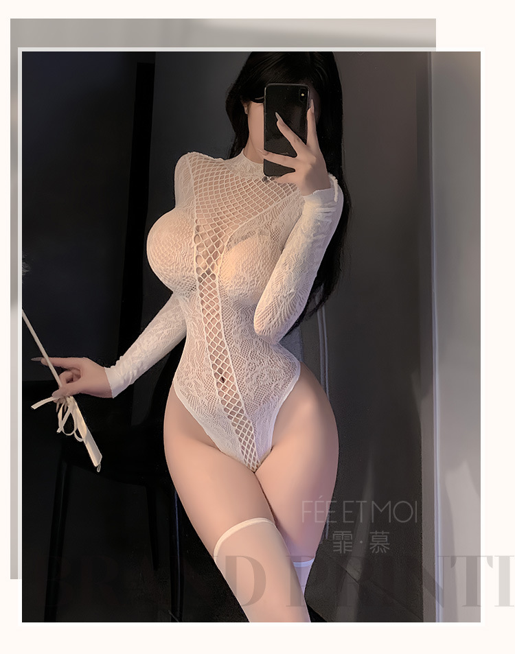 메시 자카드로 찢을 수 있는 긴팔 스타킹 세트 섹시한 속옷 섹시하고 순수한 펀칭