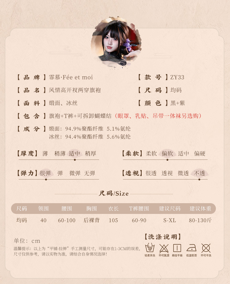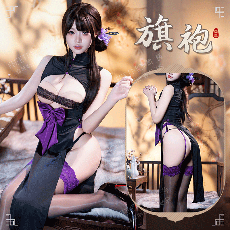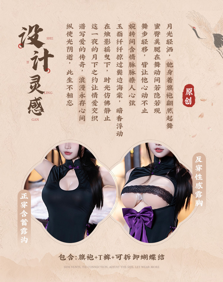 风情 高开衩 露臀 两穿 复古 旗袍 调情 露胸 诱惑 免脱 情趣内衣