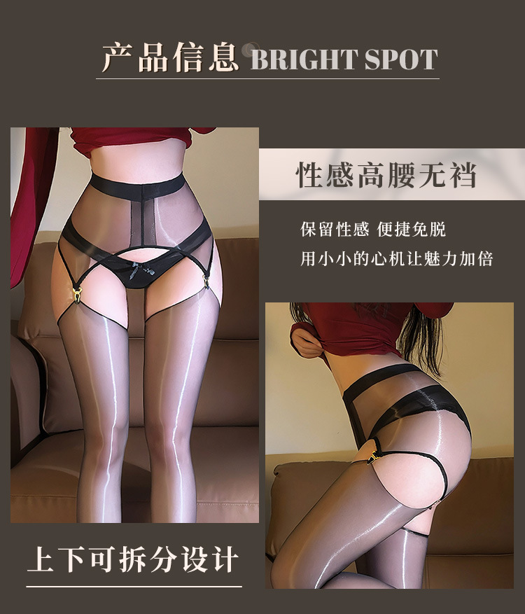 섹시한 하이웨이스트 분리할 수 있는 스타킹 피부가 투명하고 로맨틱한 블랙 실크로 섹시한 속옷을 입는다