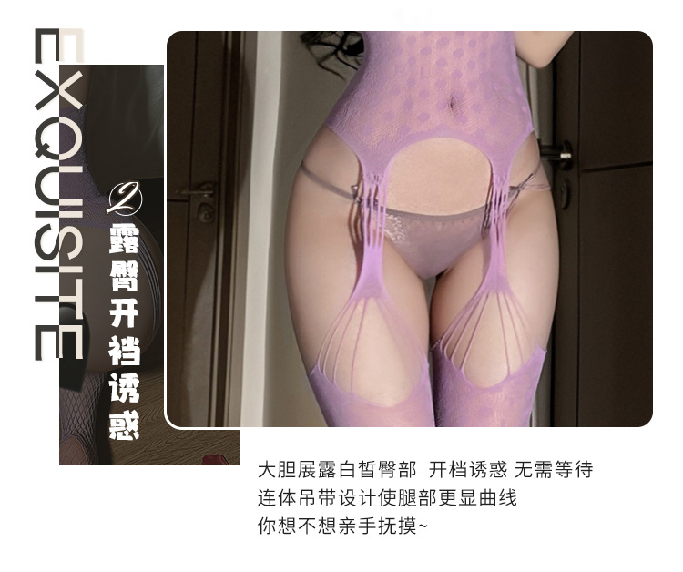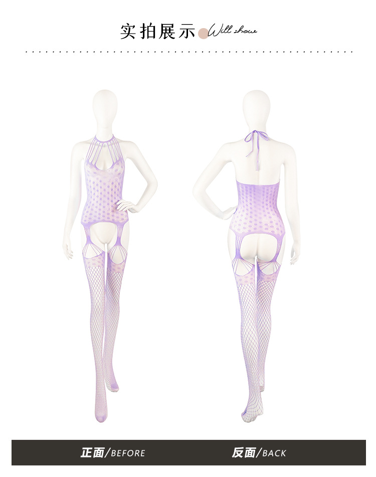 홀터넥 펀칭 가슴이 드러난 시스루 가랭이 오픈 팬티 스타킹 유혹적인 속옷