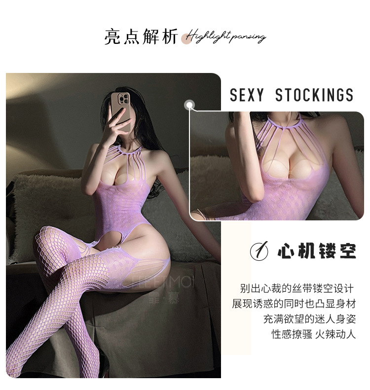 섹스 란제리 민소매 레이스 섹시 홀터넥 펀칭 스타킹 전신 망사 섹스 용품 8961