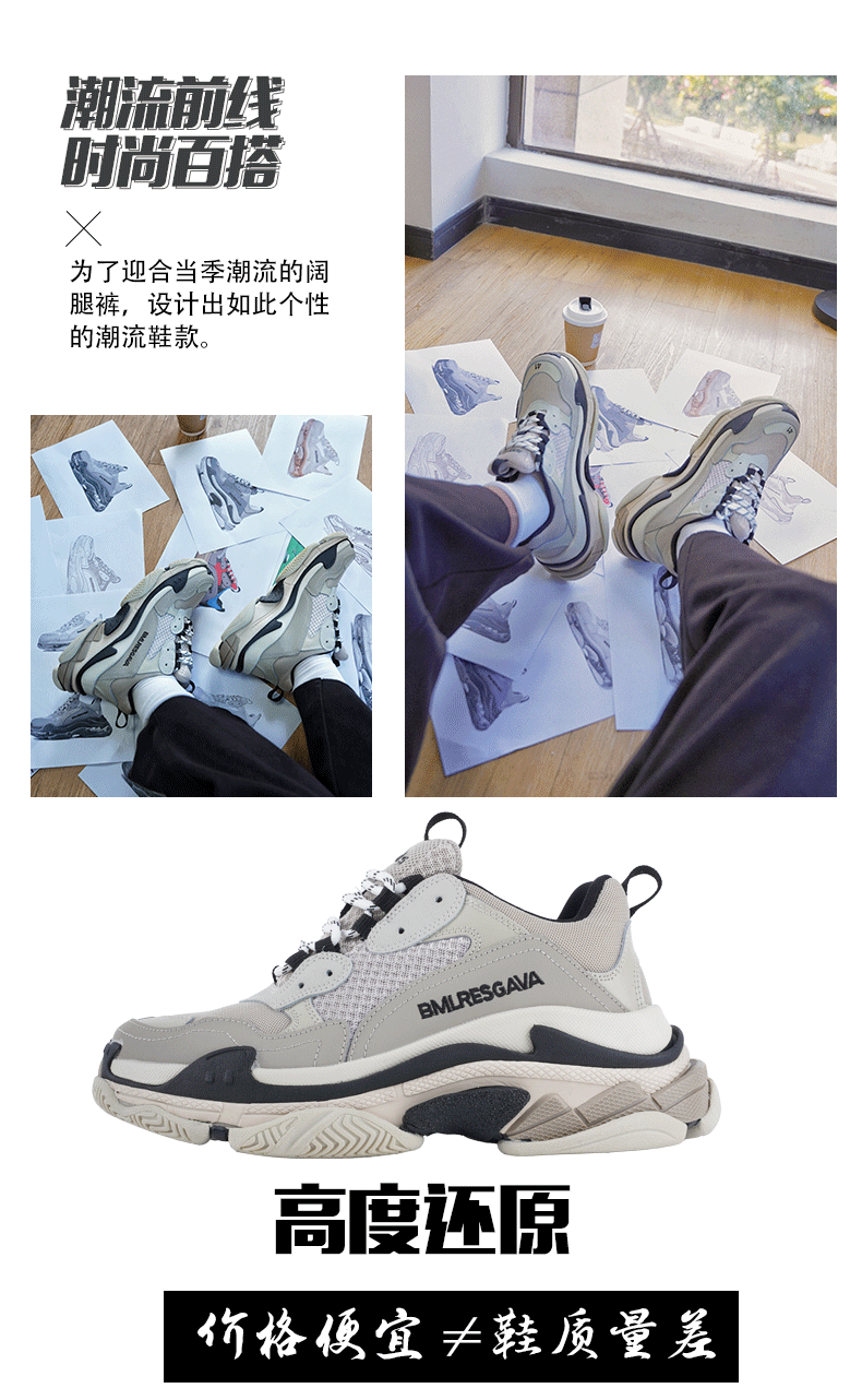 아빠 슈즈 통굽 키높이 6단 굽 캐주얼화 남녀 커플 토핑슈즈 모든 걸 소화할 수 있는 가죽 운동화