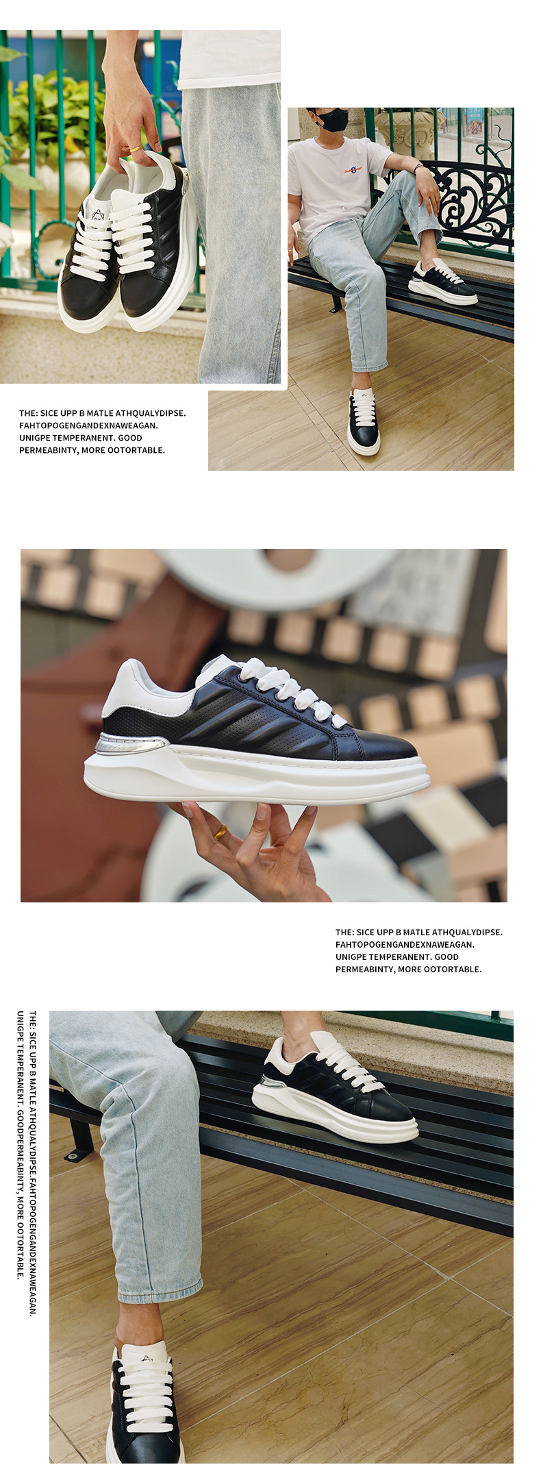 맥퀸 가죽 화이트 스니커즈 주니어 스포츠 남성 트렌드 통굽 키높이 소가죽 스니커즈 남성