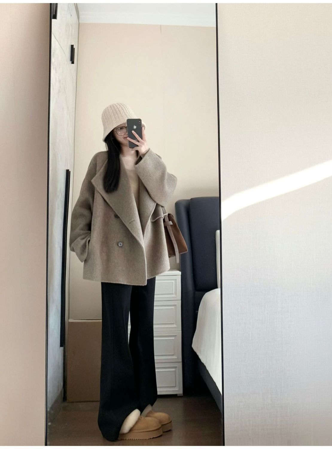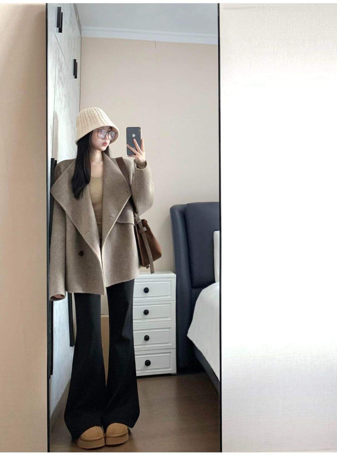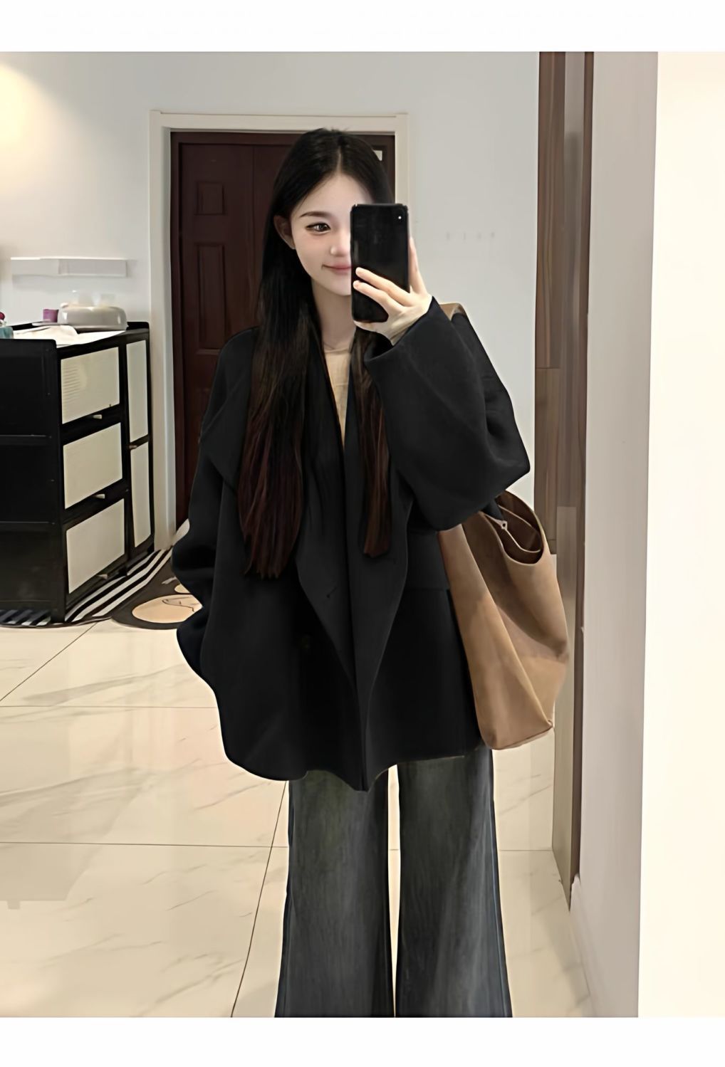 한국계 모직 코트에 키 작은 루즈한 모직 아우터 분위기 가을겨울 나른한 느낌