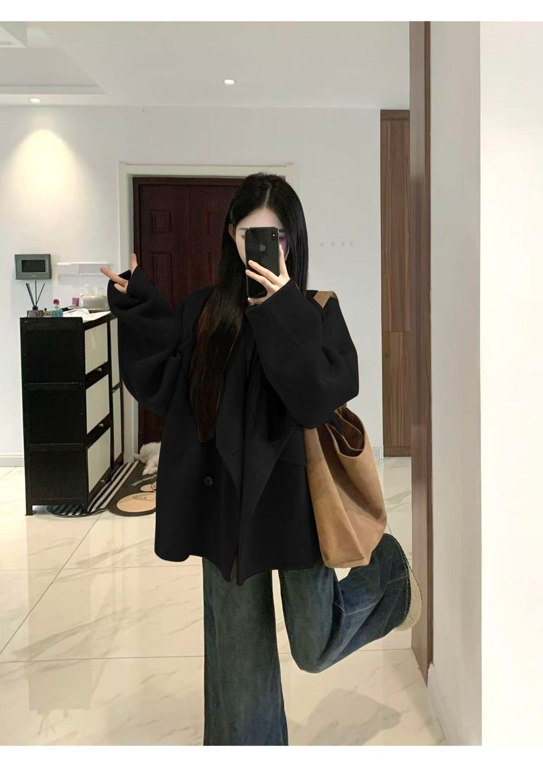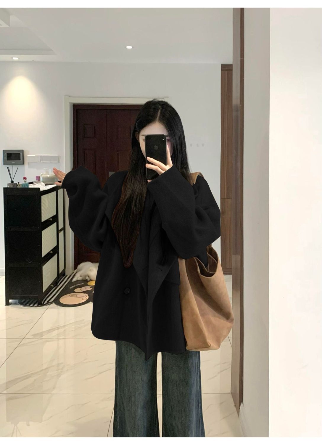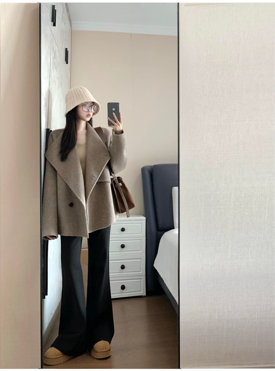 한국계 모직 코트에 키 작은 루즈한 모직 아우터 분위기 가을겨울 나른한 느낌