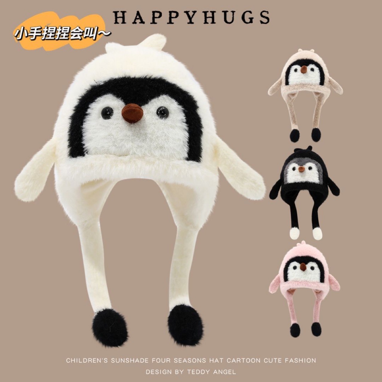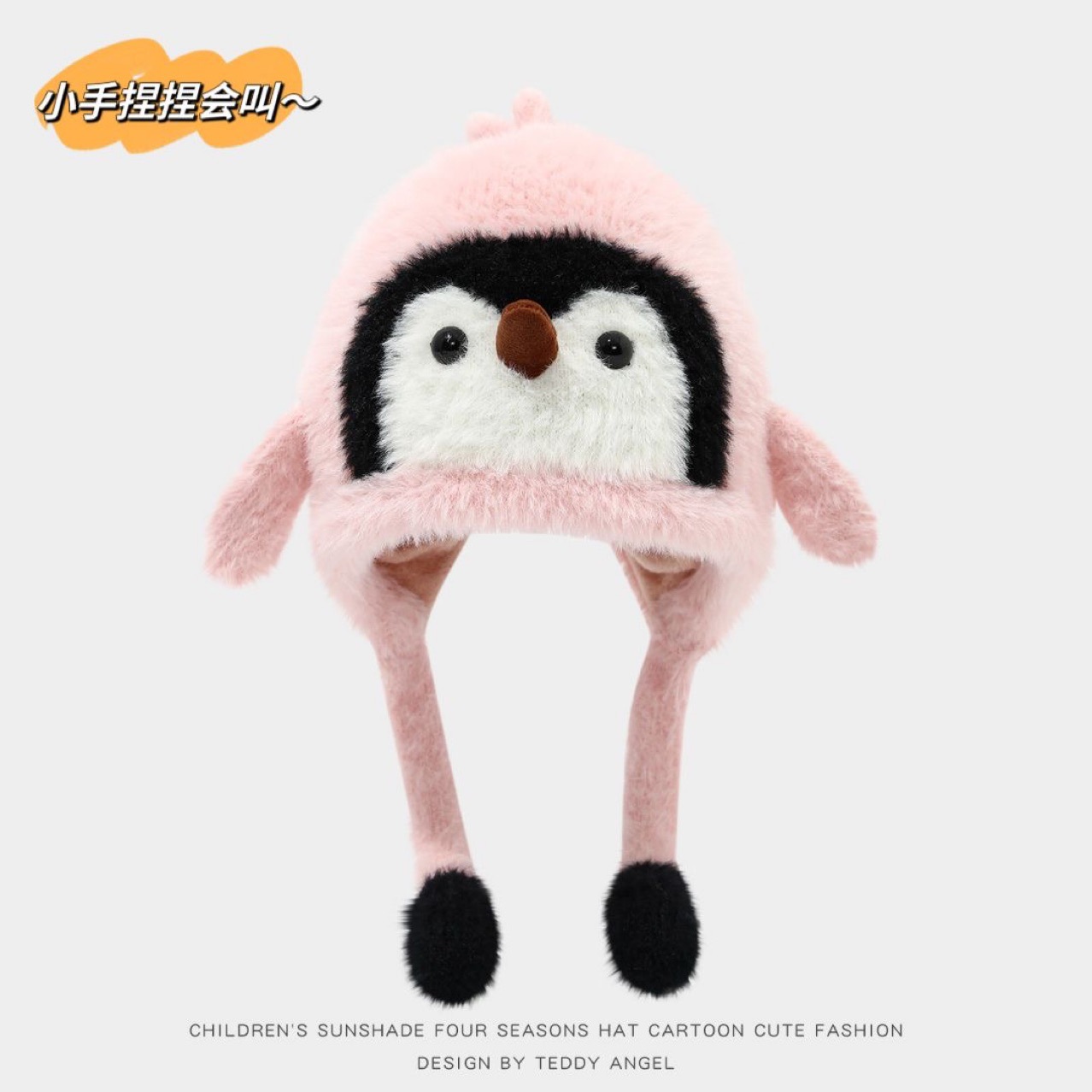 만화 어린이 펭귄 모자 레저 보온 돔에 두툼한 가을 겨울 귀보호용
