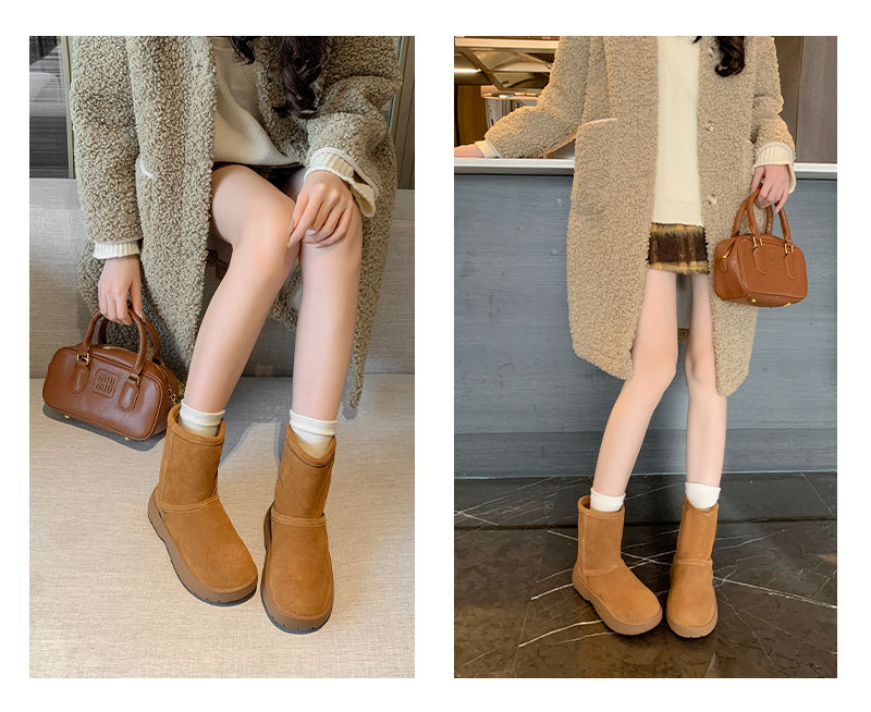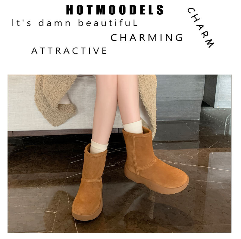 가죽 빵 스노우 부츠 여성 2025 겨울 왕홍의 인기 스타일 가볍고 마모성이 강한 앵클 부츠입니다