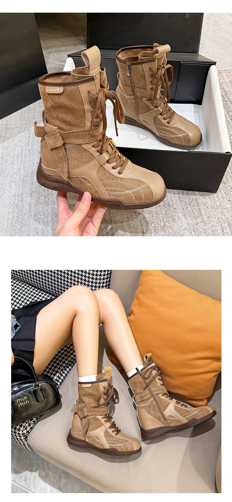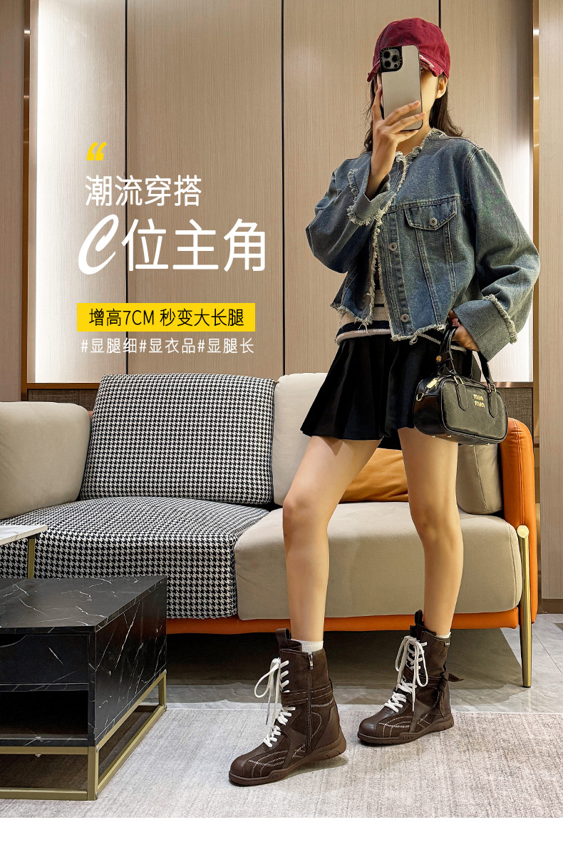 복싱 부츠 여성 신상품 가을 겨울 아우터 워커부츠 작은 키 속살이라 지치지 않아 미들 부츠