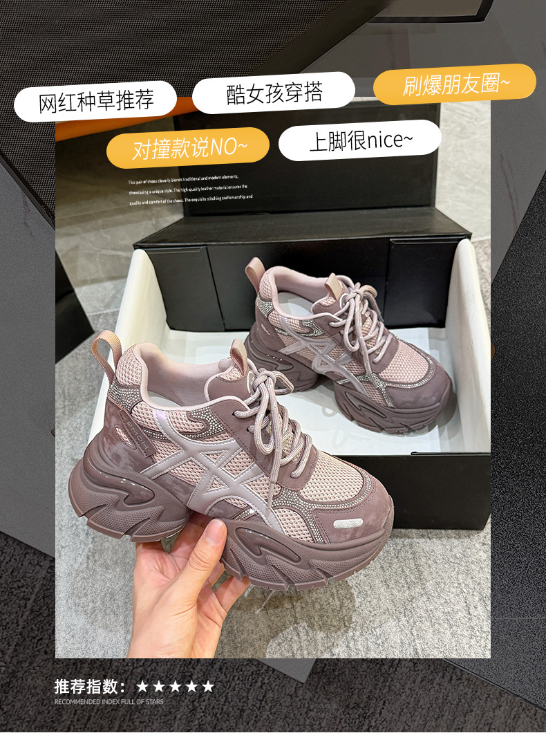 가을 겨울 신상품 아빠 신발 두꺼운 바닥에 키높이 9cm 작은 키 캐주얼 어디에나 매치할 수 있는 패션 끈 여성화