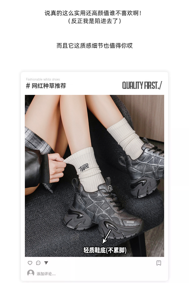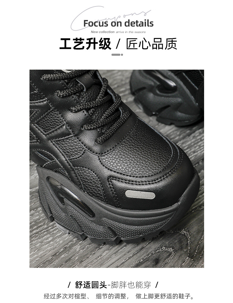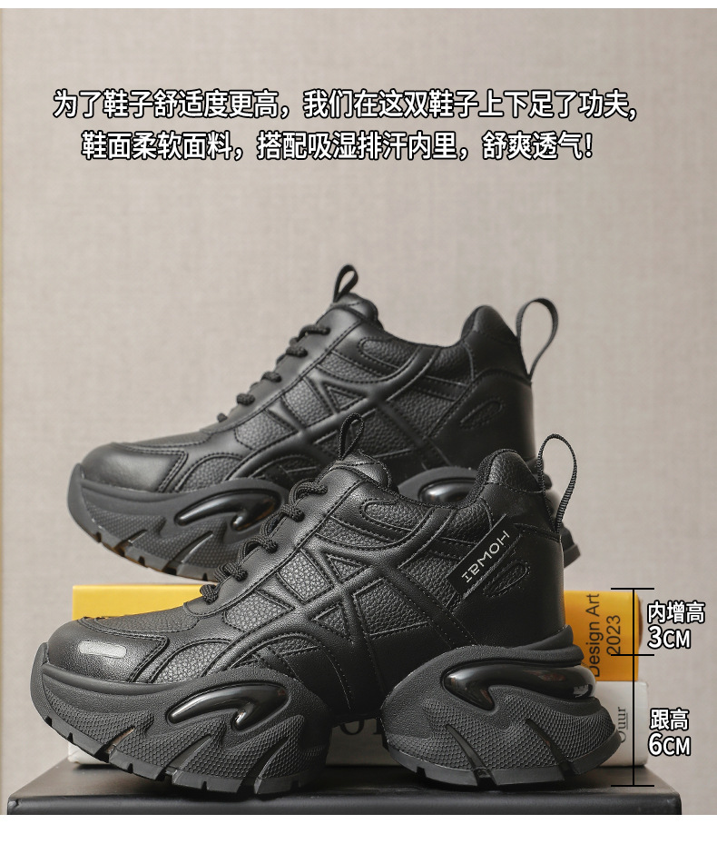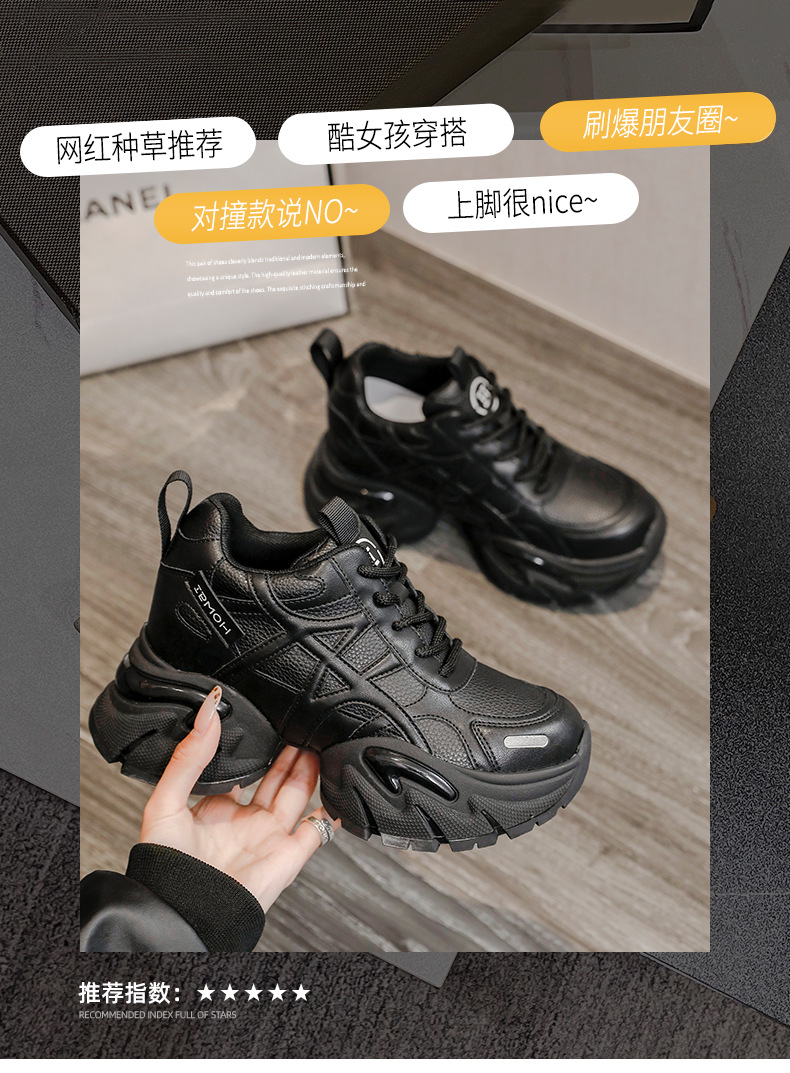 통굽 키높이 아빠 슈즈녀 2025가을 겨울 신상품 가죽 스니커즈 어디에나 매치해 발이 작아 보이는 단화