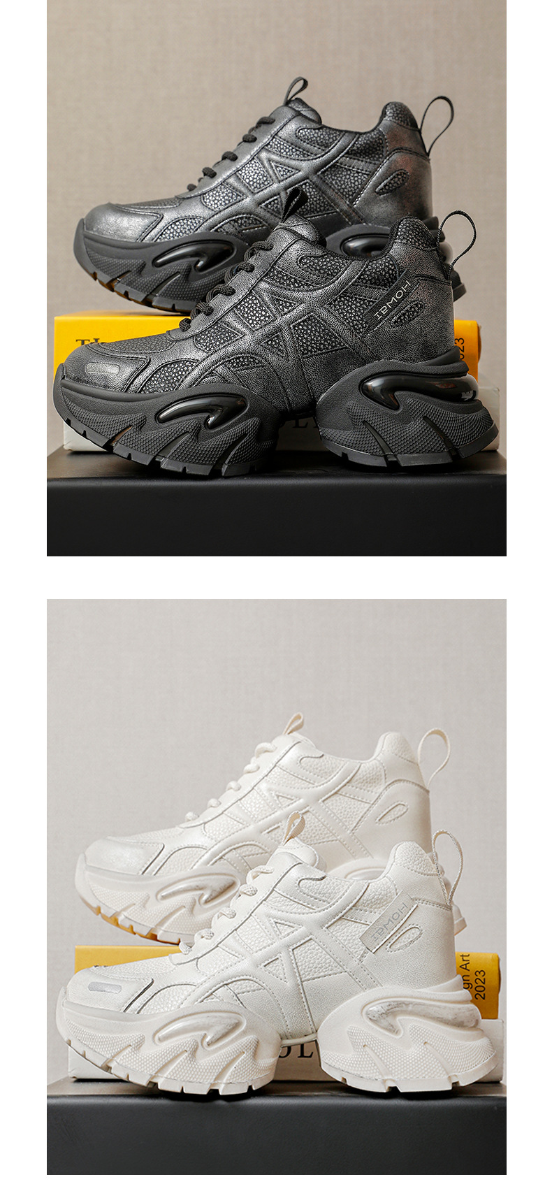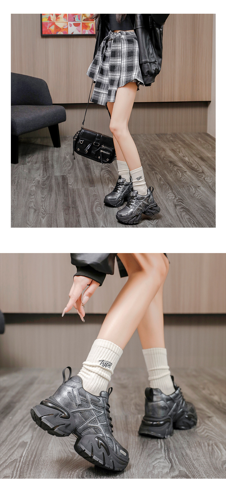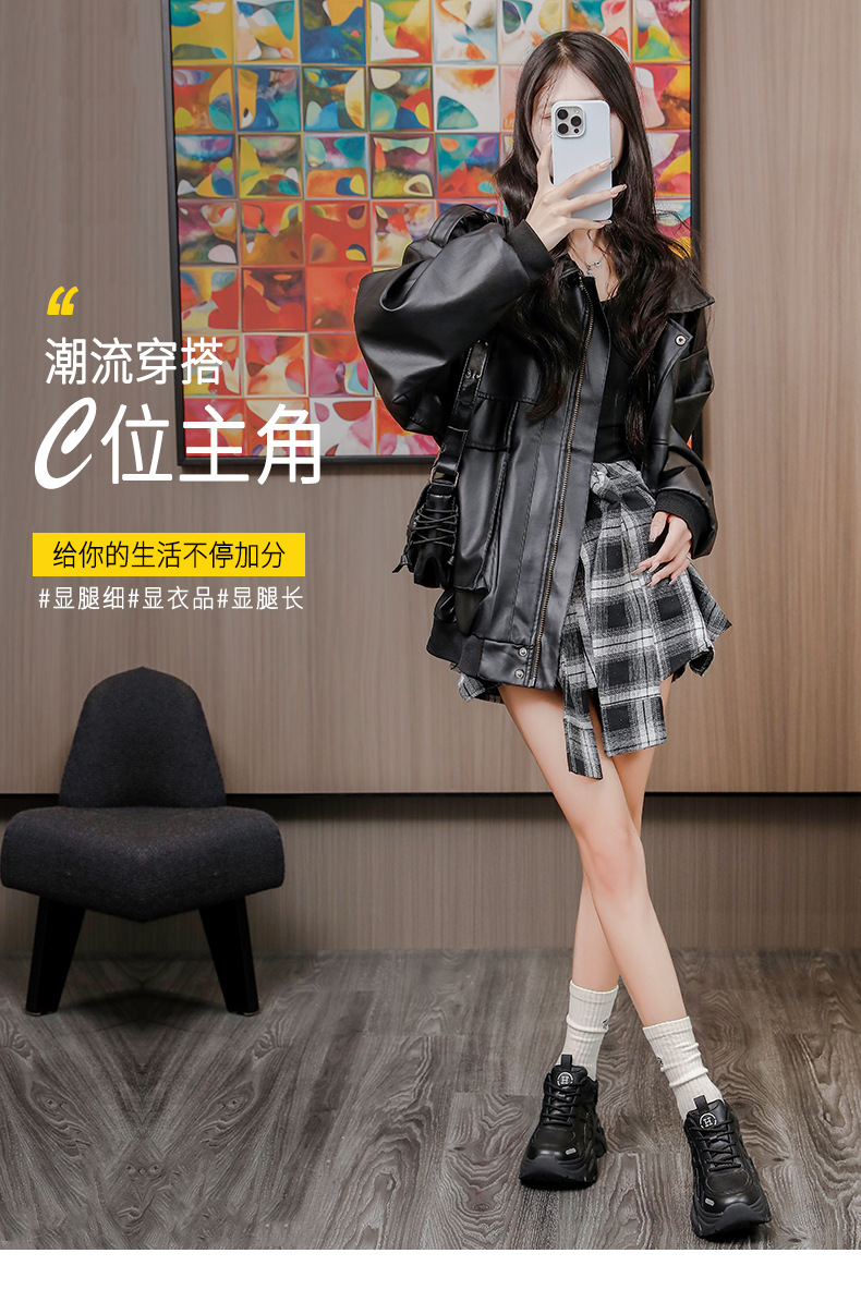 통굽 키높이 아빠 슈즈녀 2025가을 겨울 신상품 가죽 스니커즈 어디에나 매치해 발이 작아 보이는 단화