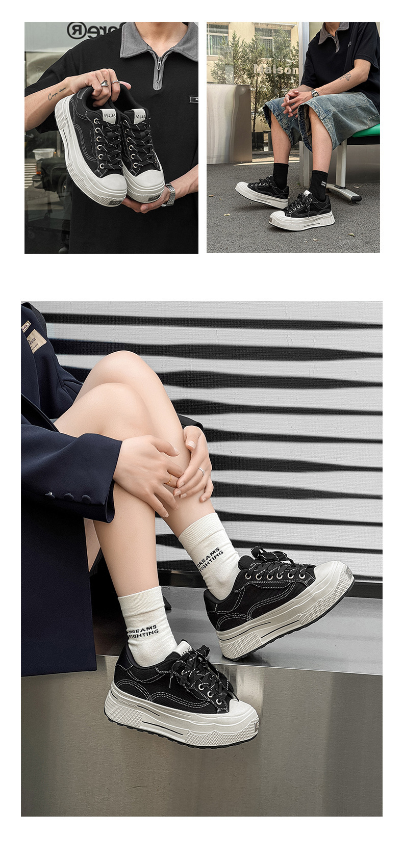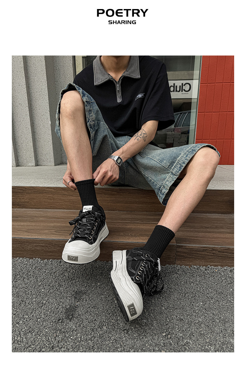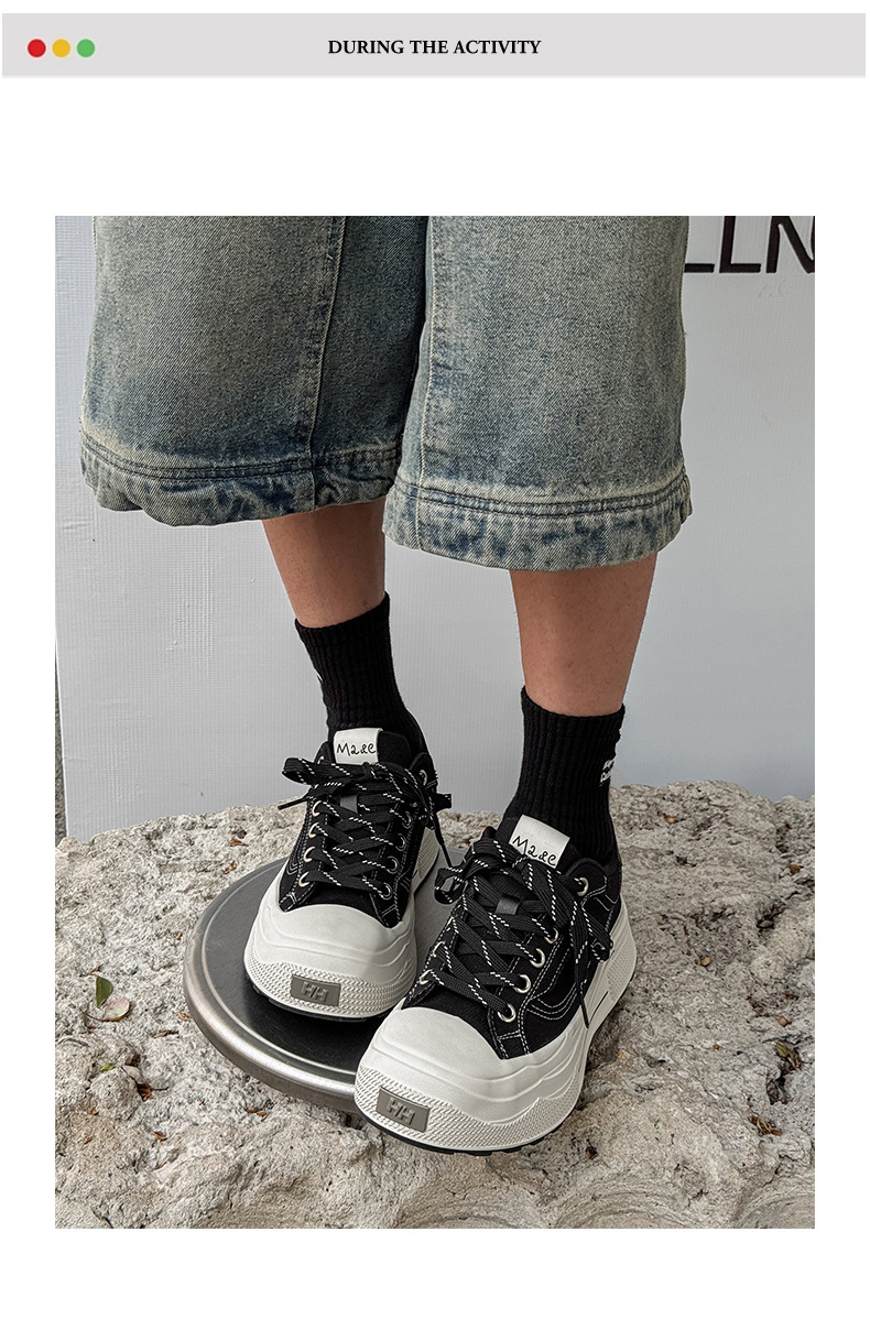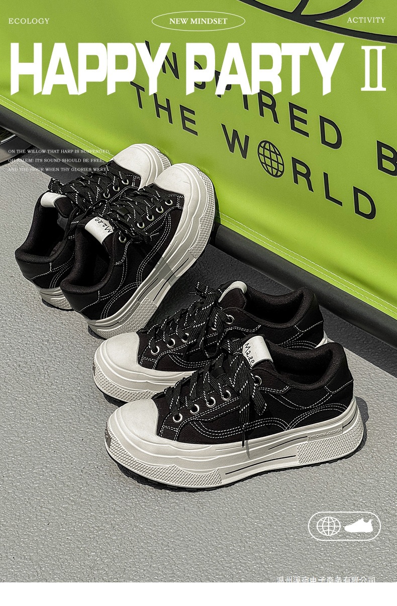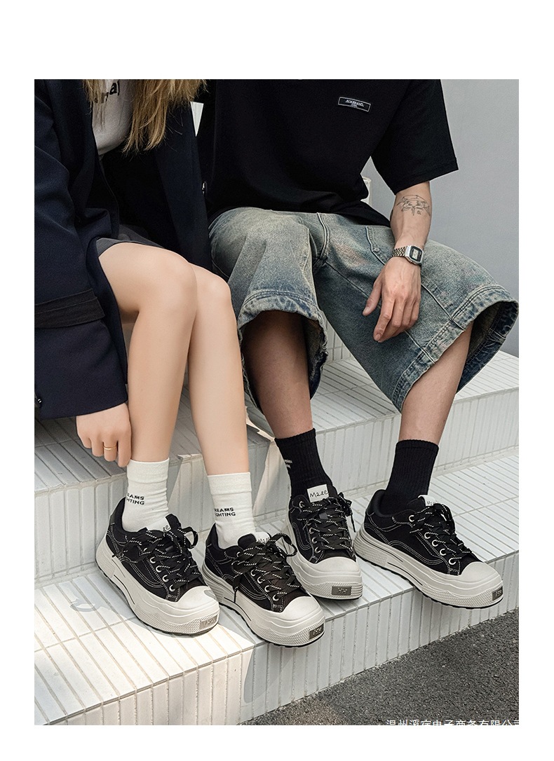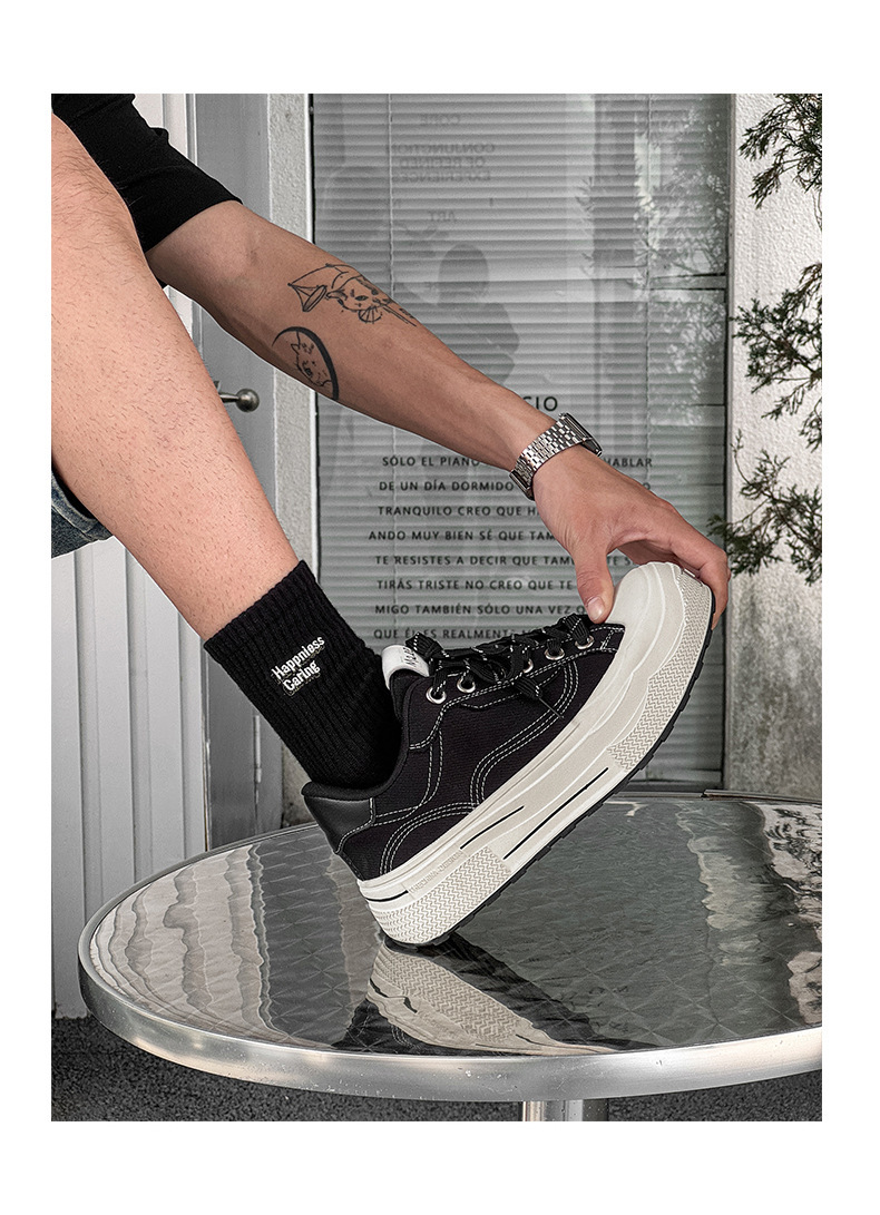 남성 키 큰 캔버스 슈즈 미니 블랙 슈즈 스포츠 빈티지 내구성이 강한 스니커즈 여성