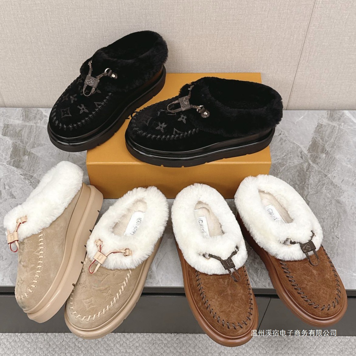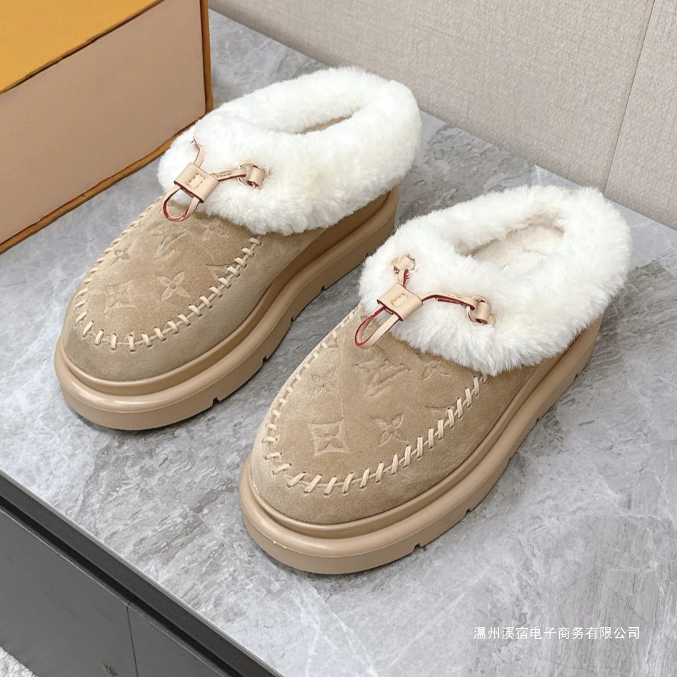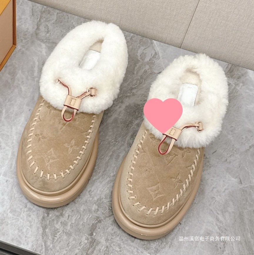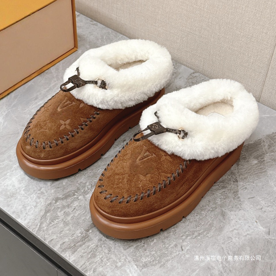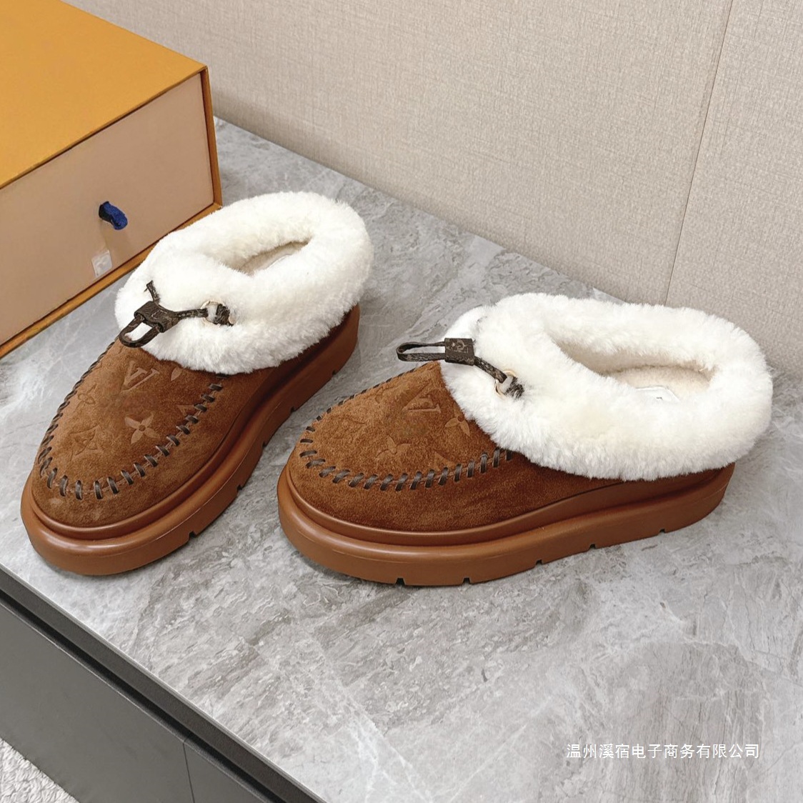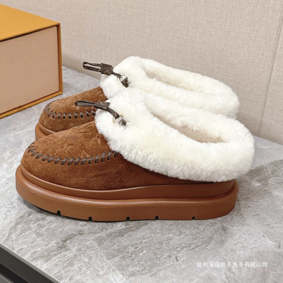 하이판 양털 슈즈 여성 가을 겨울 새로운 스노우 부츠 따뜻한 두꺼운 바닥 한 발에 슬림한 진짜 가죽 슬리퍼