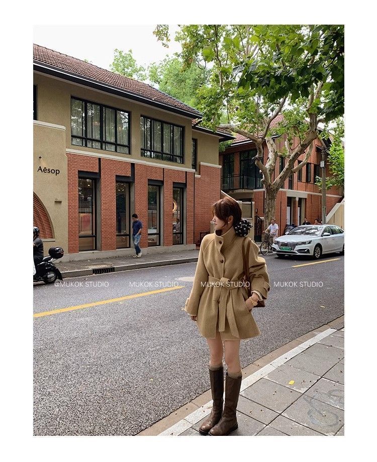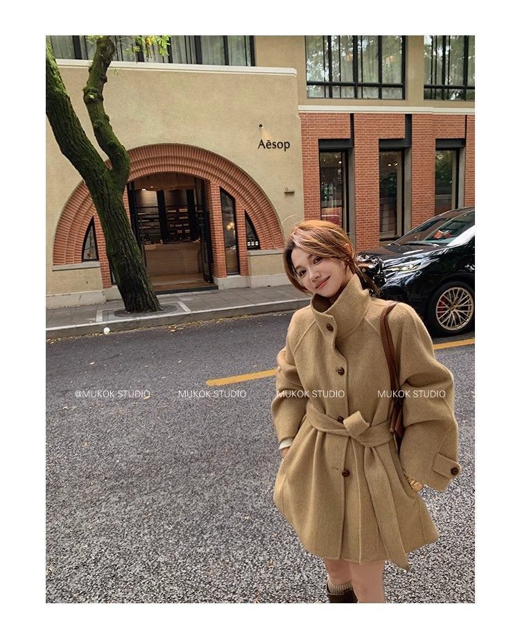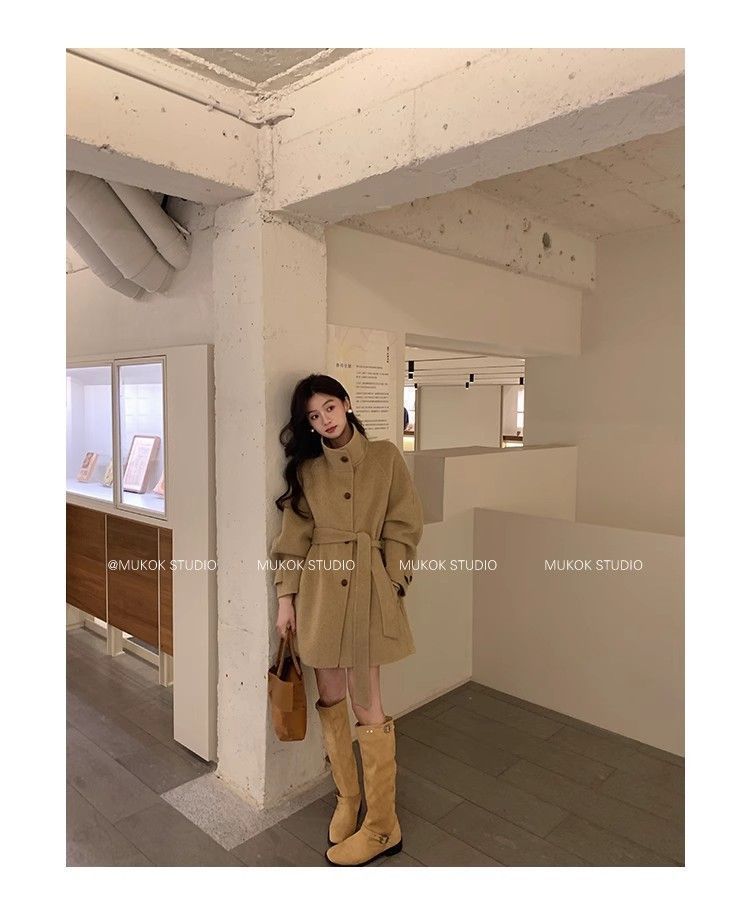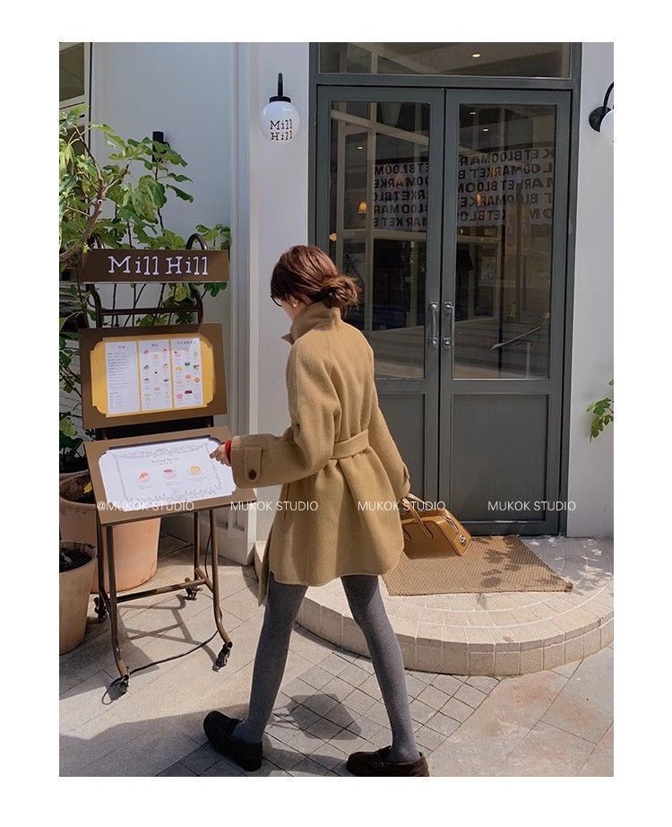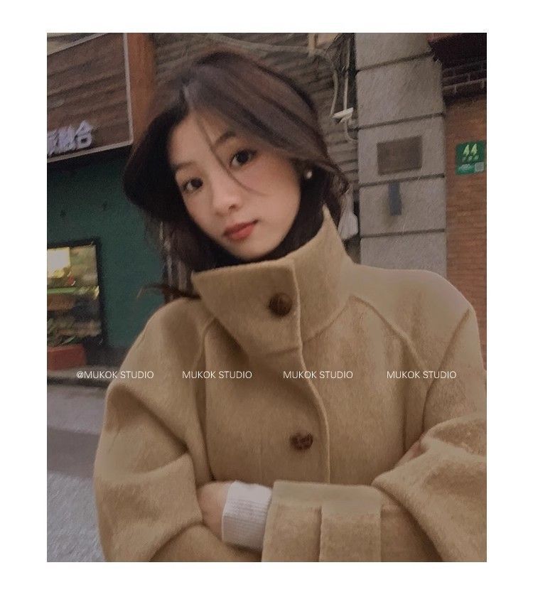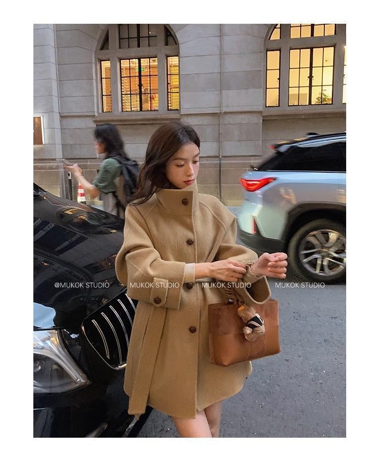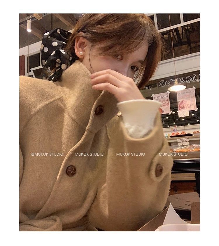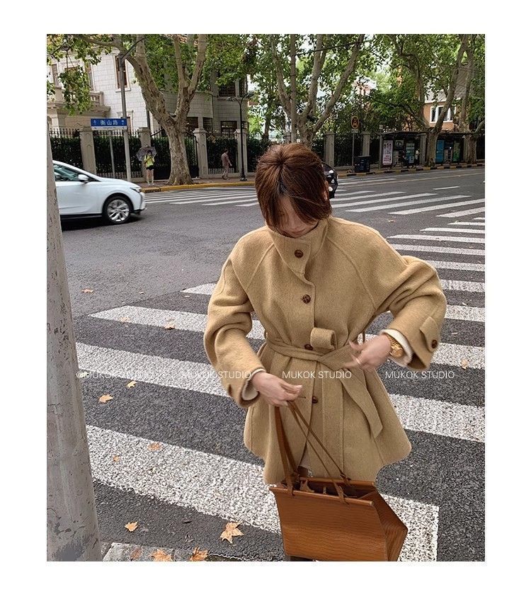 모직 가을 코트 차이나 칼라 심플한 밴딩 점퍼