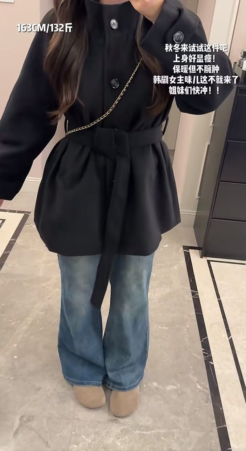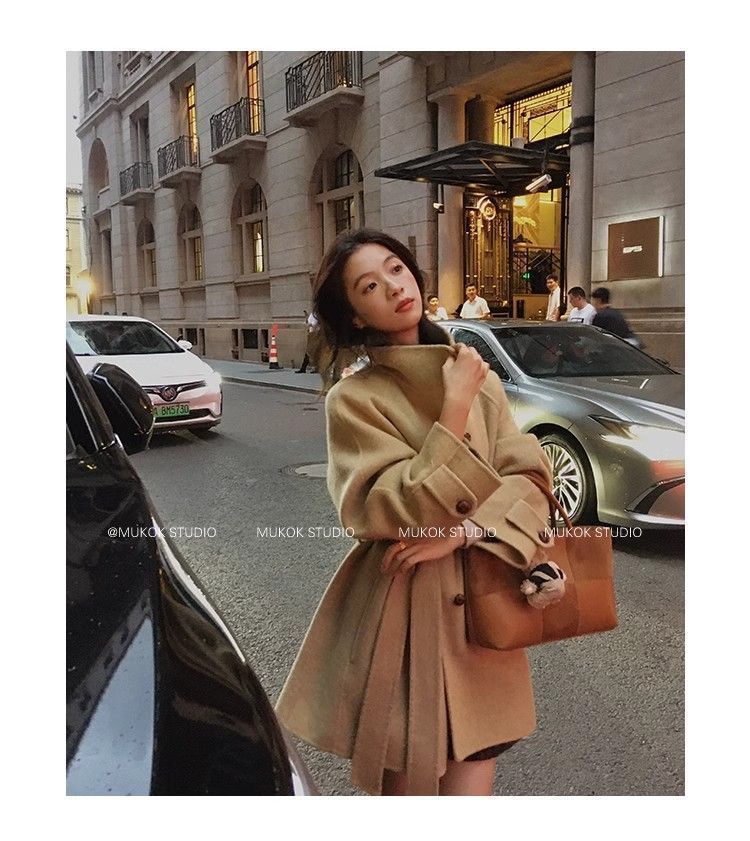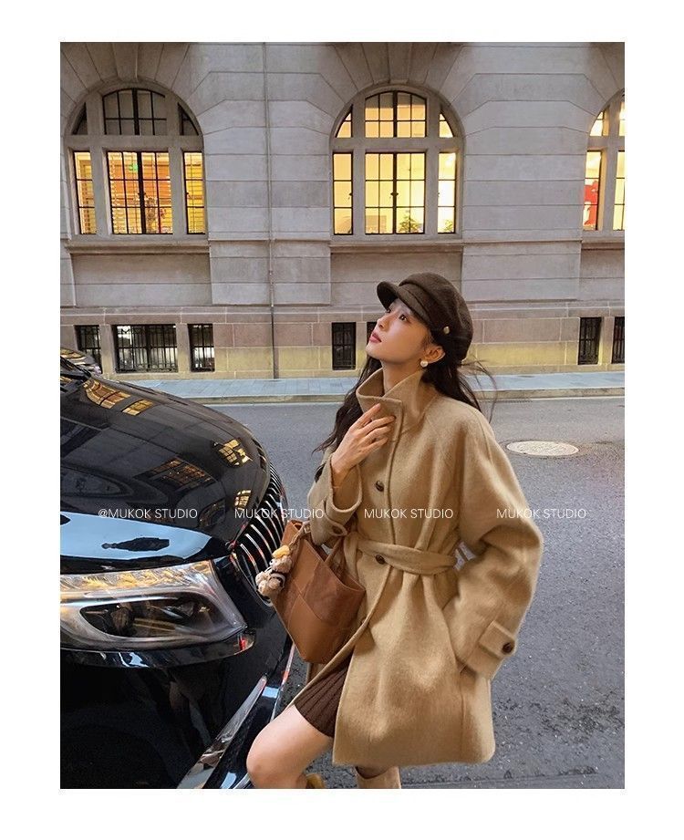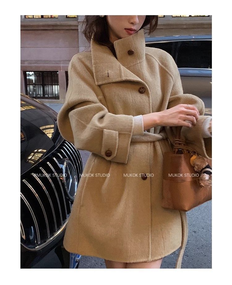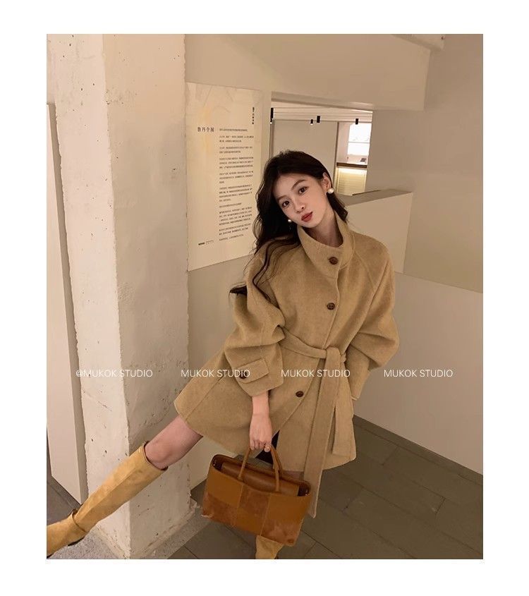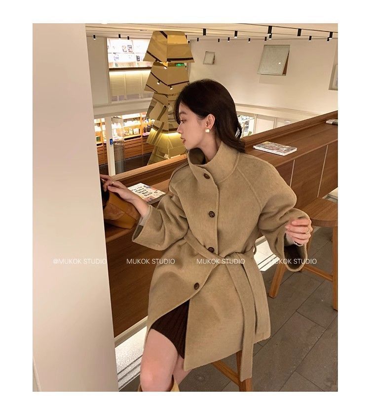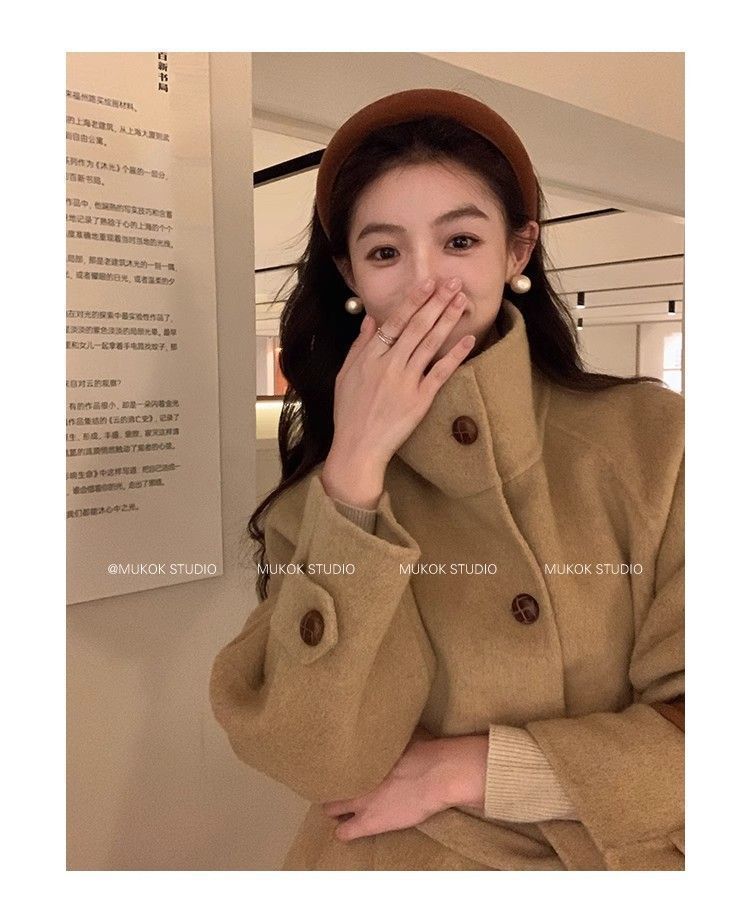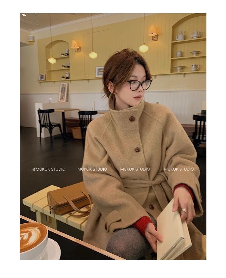 모직 가을 코트 차이나 칼라 심플한 밴딩 점퍼