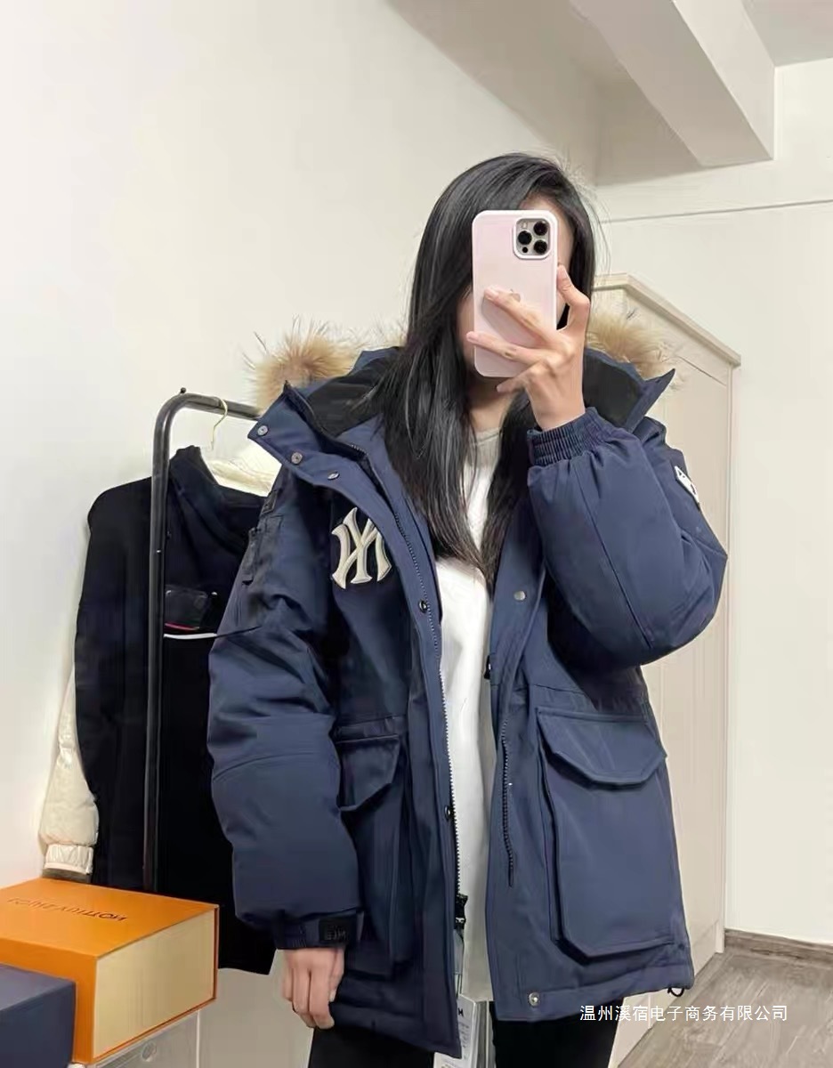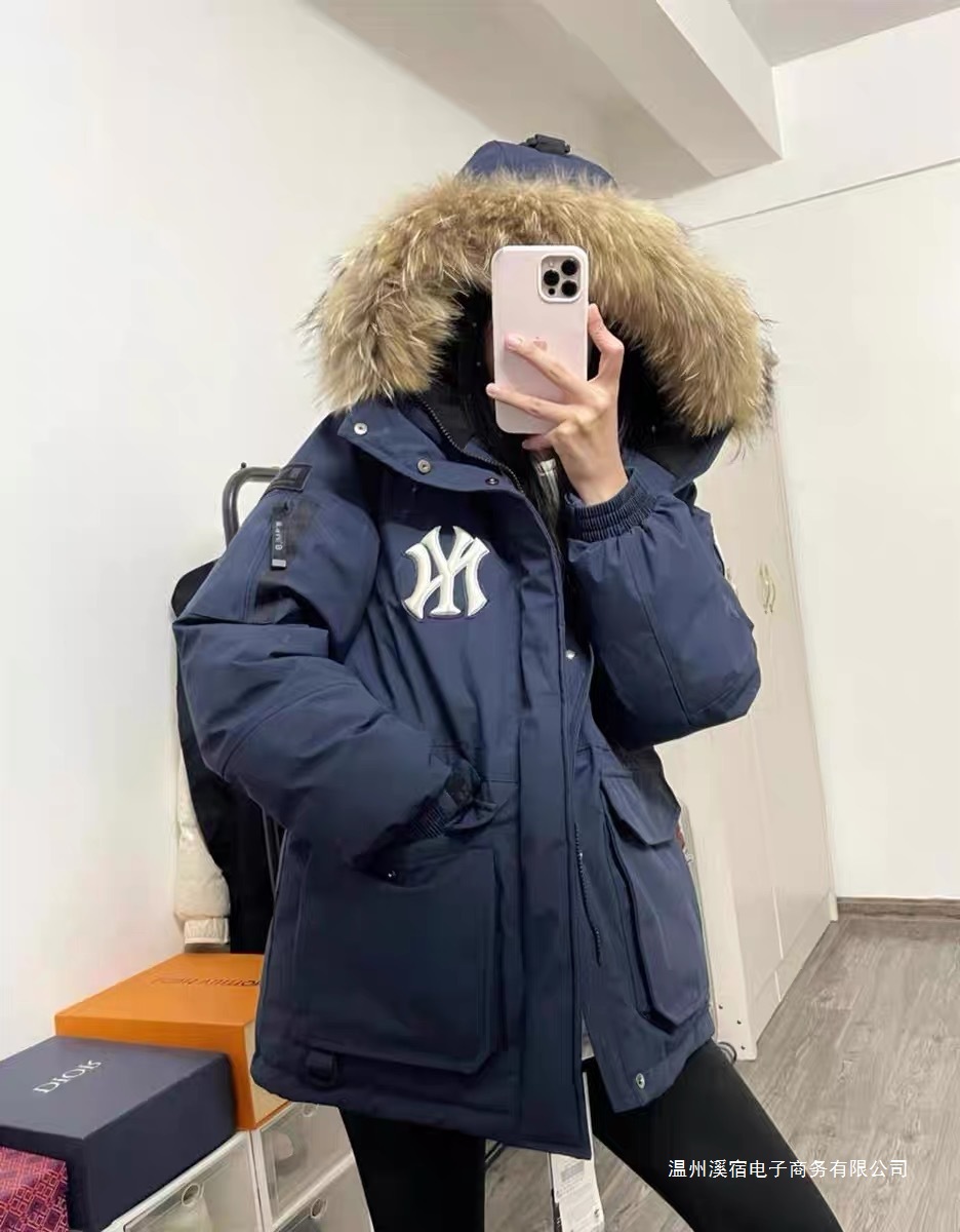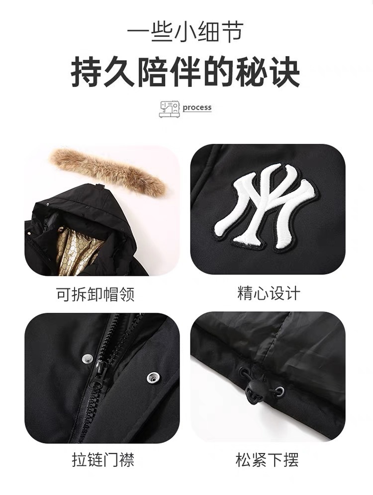 mlb 남녀 캐주얼 두루마기 후드 겨울용 패딩 오버칼라 미디엄 기장으로 톡톡하게 연출