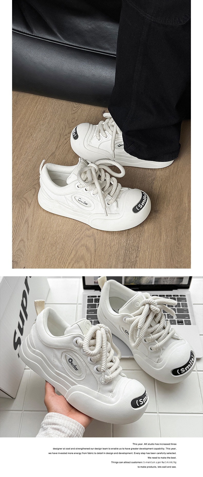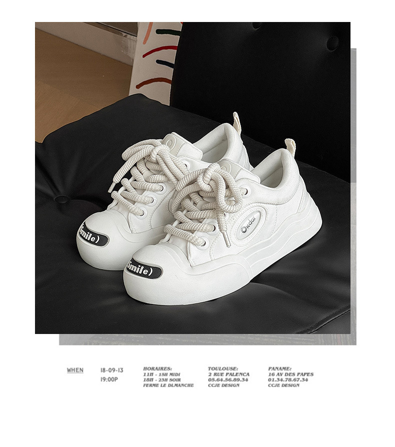 커커웃는 슬립슈즈 2025 신상품 큰 코가 밉살스러운 귀여운 화이트 슈즈 통굽 빵 캐주얼 슈즈