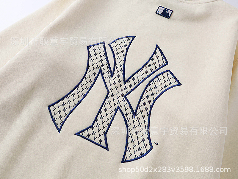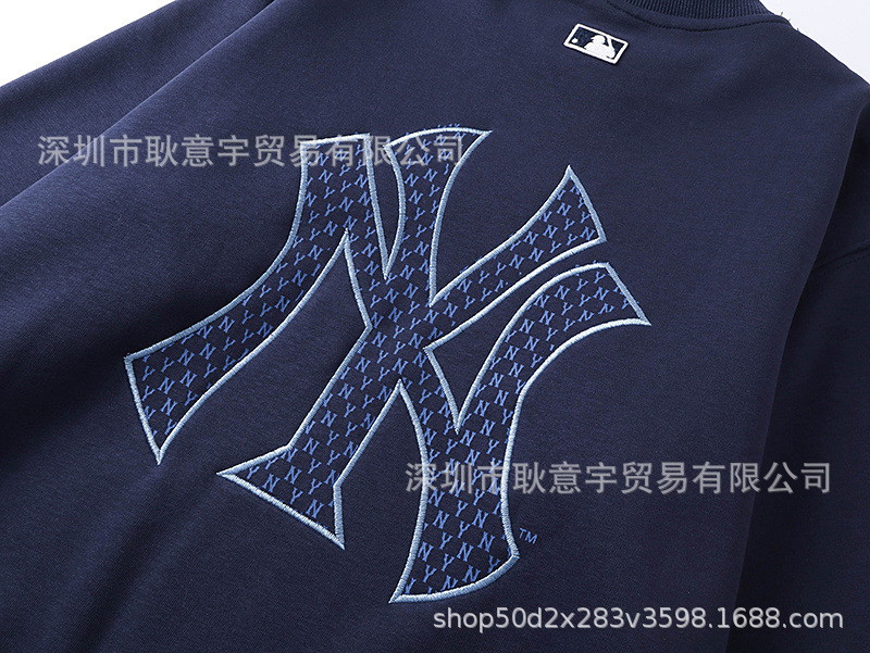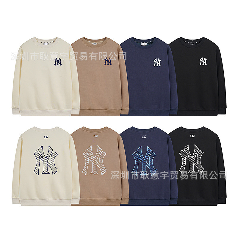 mlb 기모 맨투맨 가을겨울 신상품 빈티지 앙증머리 ny 프레임 자수 라운드넥 남녀 커플 탑