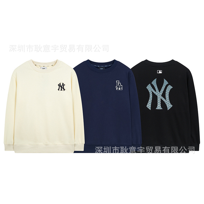 가을 겨울 신상품 패션 mlb 기모 맨투맨이 그라데이션 꽃 큰 로고 ny 프린트 라운드 남녀 커플 탑입니다