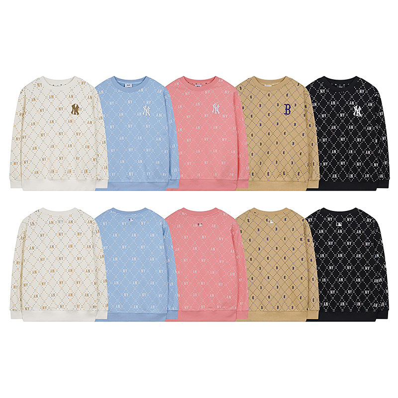 mlb 맨투맨 가을겨울 신상품 한풍 빈티지 큐빅 무늬 ny 풀 프린트 라운드 넥 캐주얼 남녀 공용의 맨투맨입니다