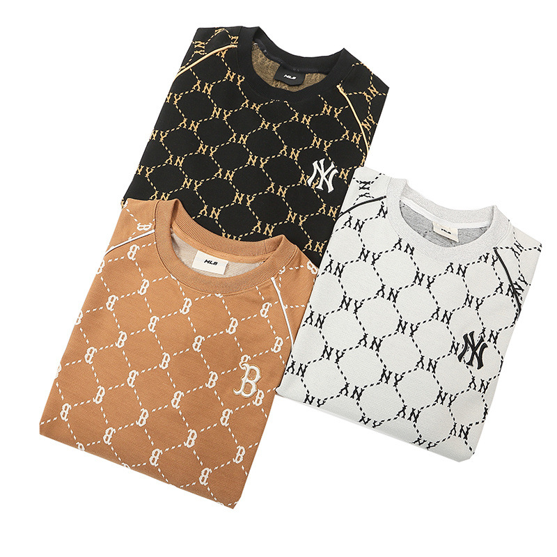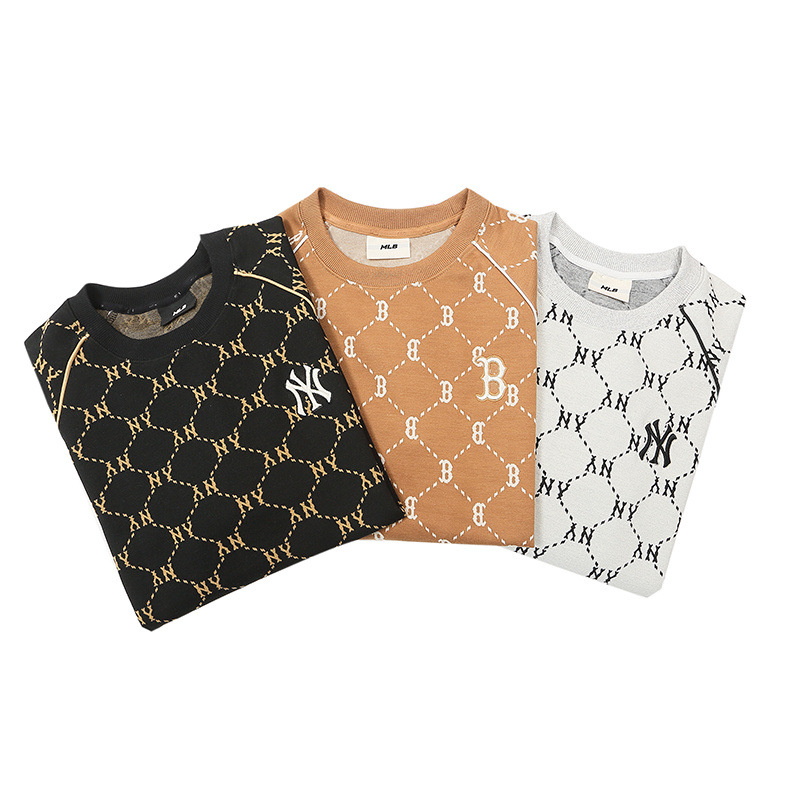 mlb 맨투맨 가을 겨울 신상품 다이아몬드 알파벳 자카드 라운드 넥 캐주얼 남녀 커플 탑