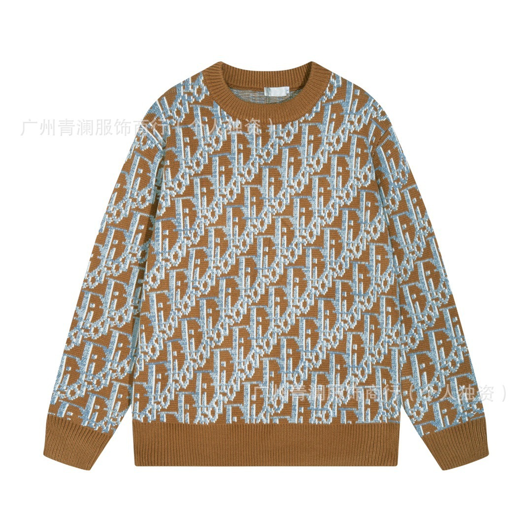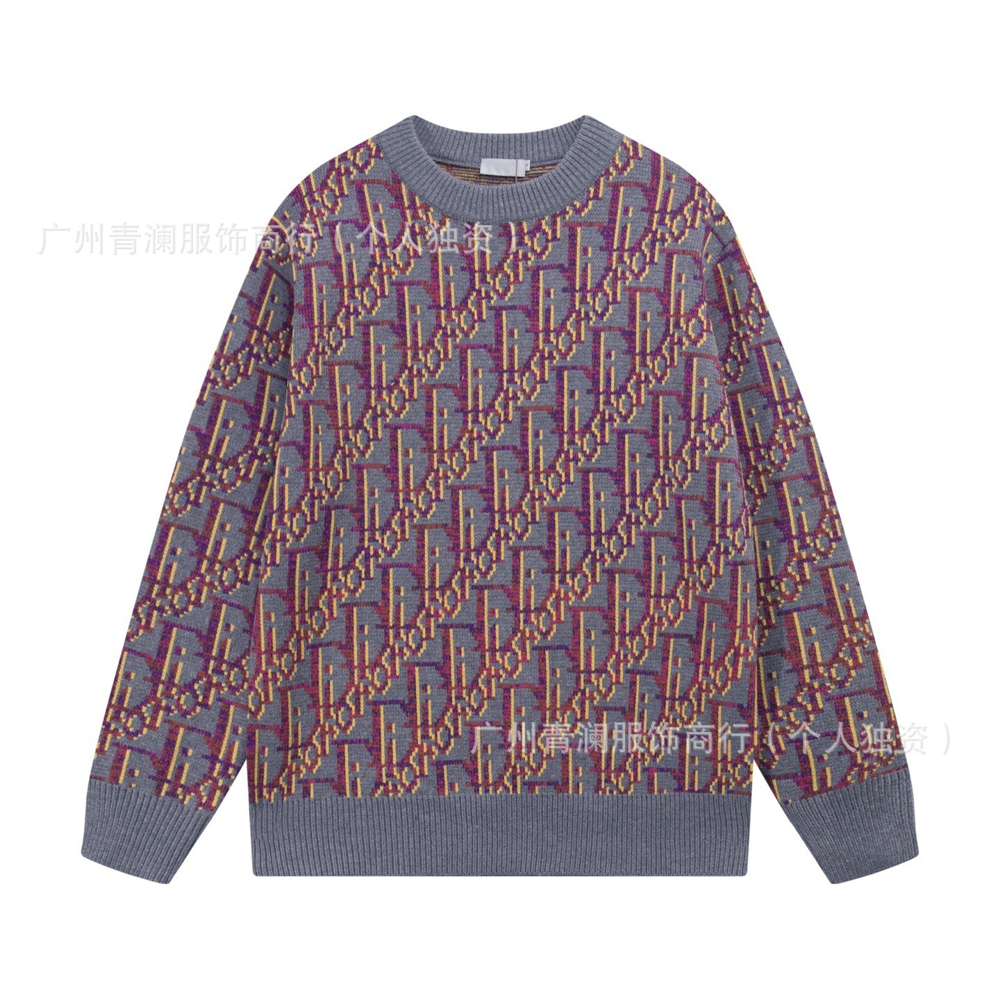 컬러 로고 자카드 울 니트 라운드 칼라의 캐주얼하고 루즈한 풀오버 긴팔 니트가 전품