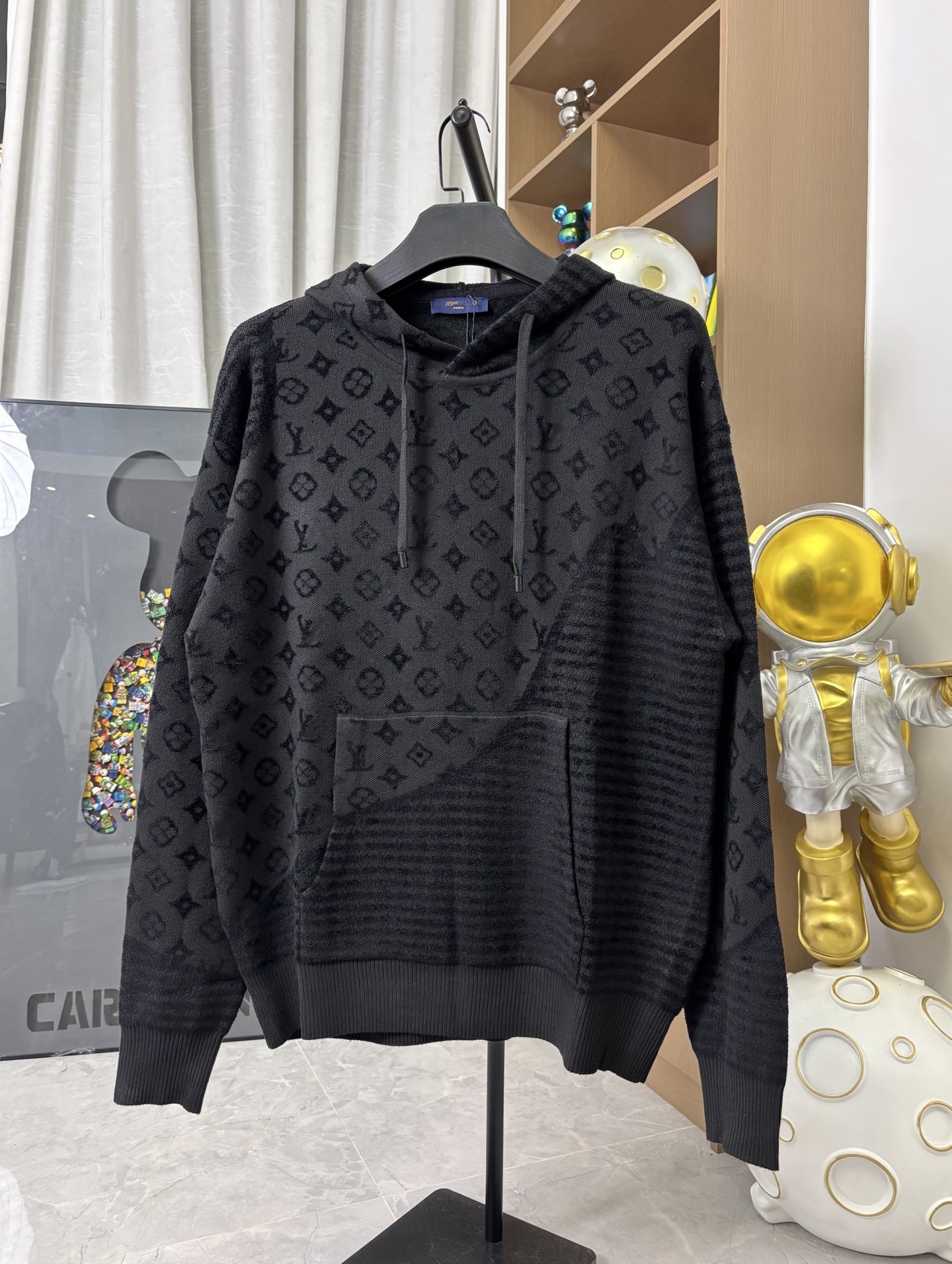 2025가을 신상품 로고 자카드 짜임 울 니트 박스 긴팔 후드 맨투맨