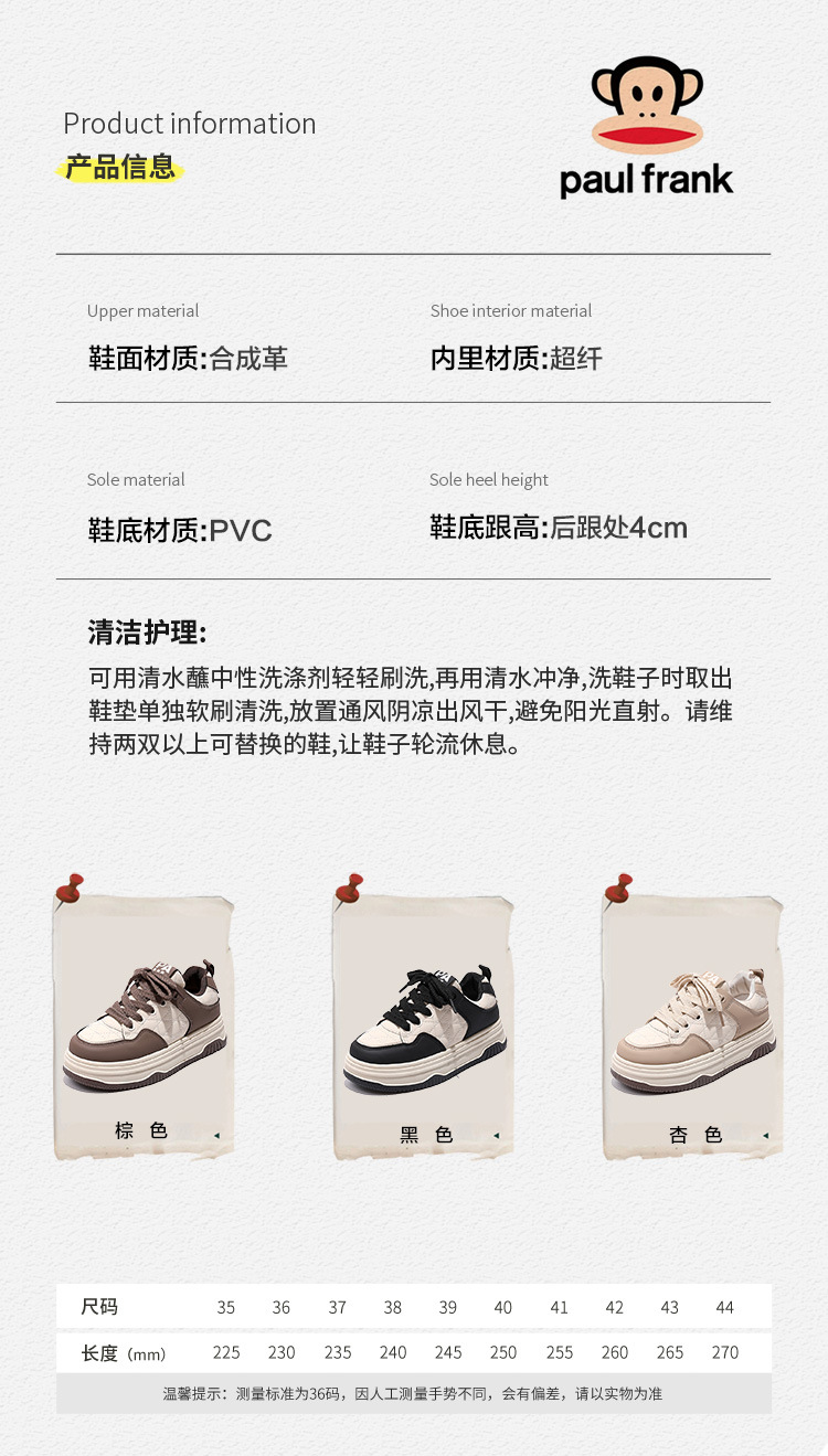 폴 프랭크 (paul frank) 입 큰 원숭이와 흰 구두 여성용 편한 여성용 구두 통굽 키높이 캐주얼화