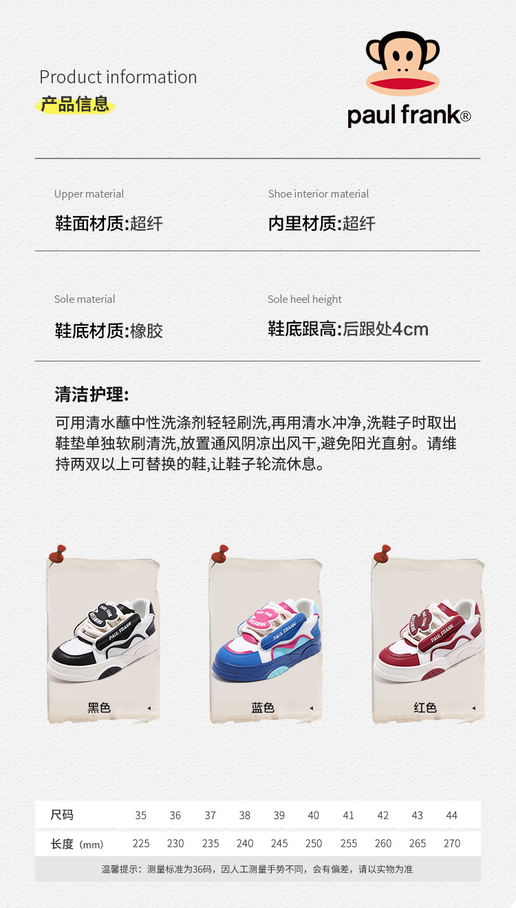 폴프랭크 몽키 스타일의 편안한 스니커즈 스쿨룩 키높이 캐주얼화
