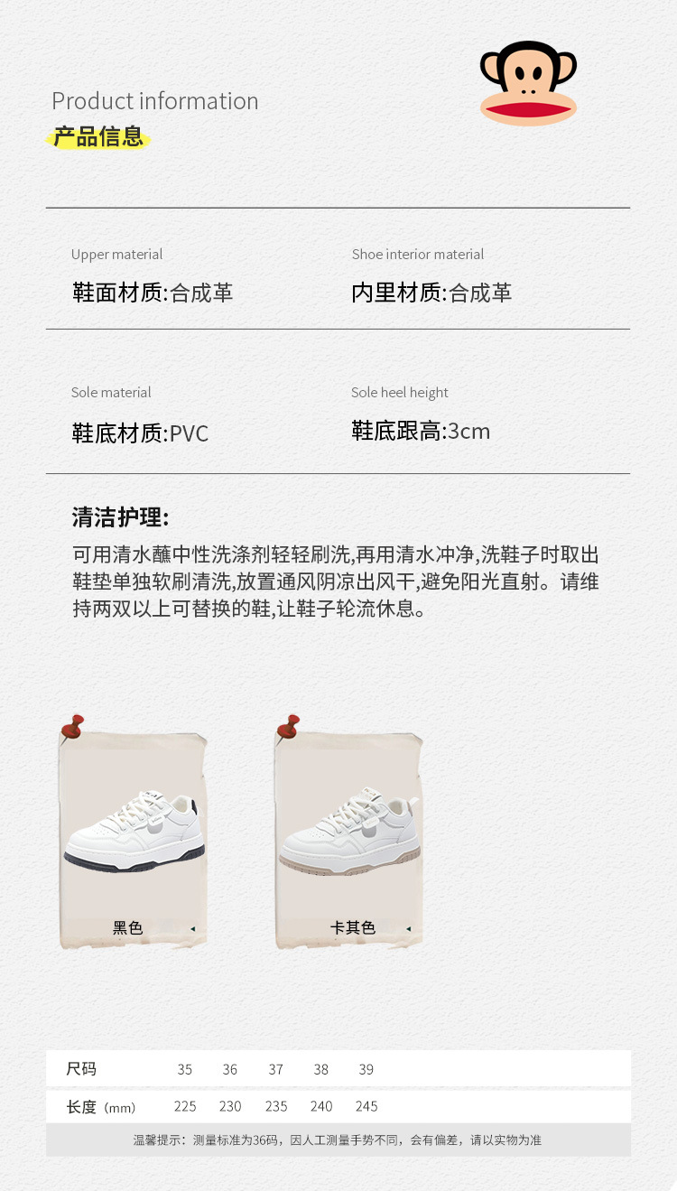 폴프랭크 (paulfrank) 큰 원숭이, 통굽, 흰 구두, 여성용 슈즈 편안하고 캐주얼하며 모두 어울리는 시크 (chic) 스포츠화