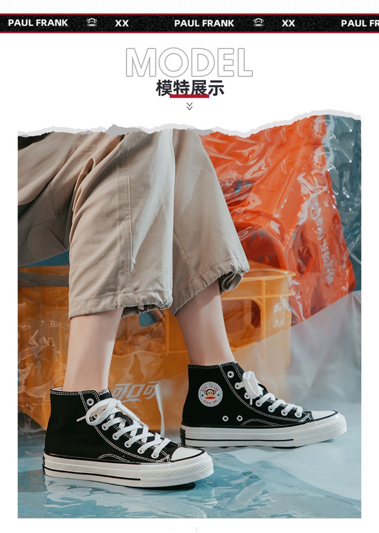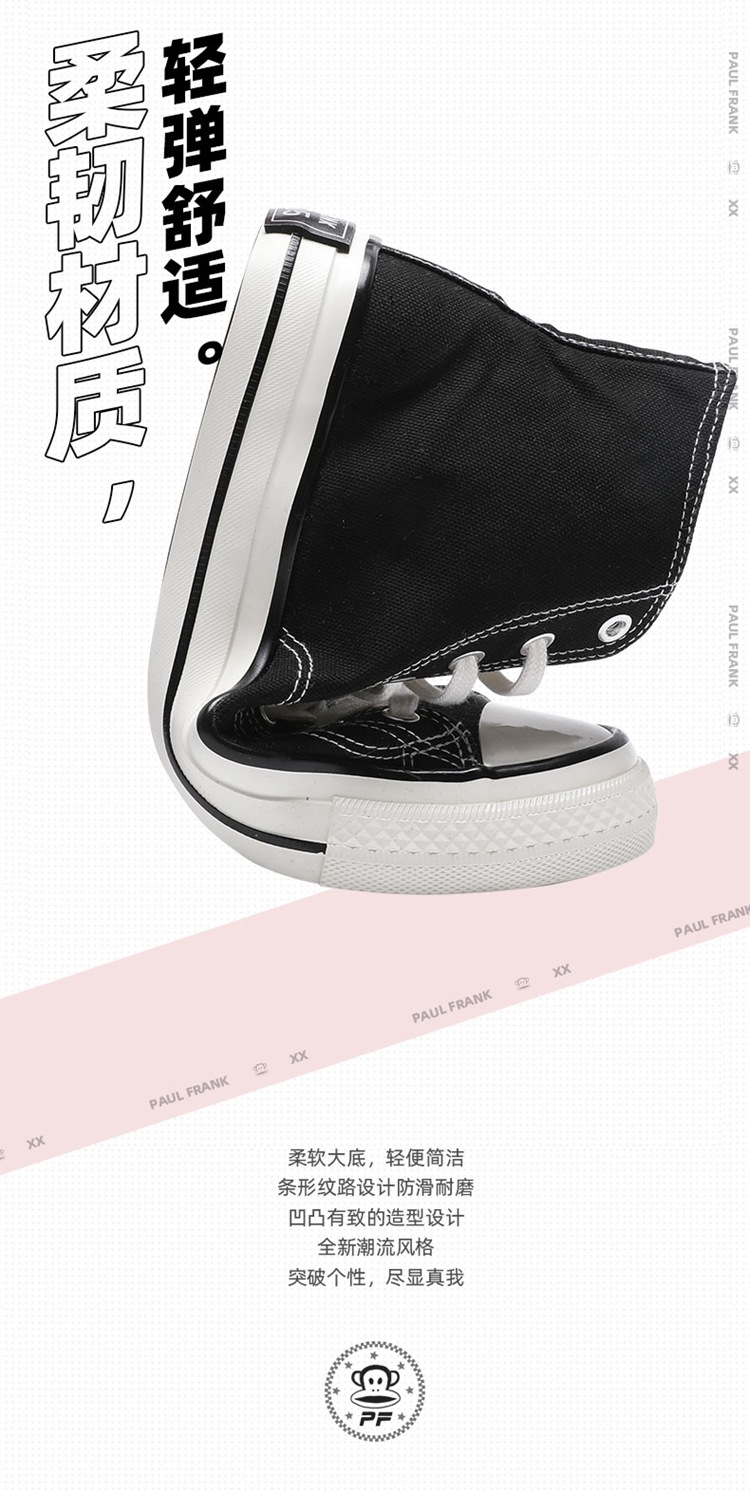 폴프랭크 원숭이 하이탑 스니커즈 여성용 블랙 스니커즈 어디에나 어울리는 세련된 봄여름 스니커즈