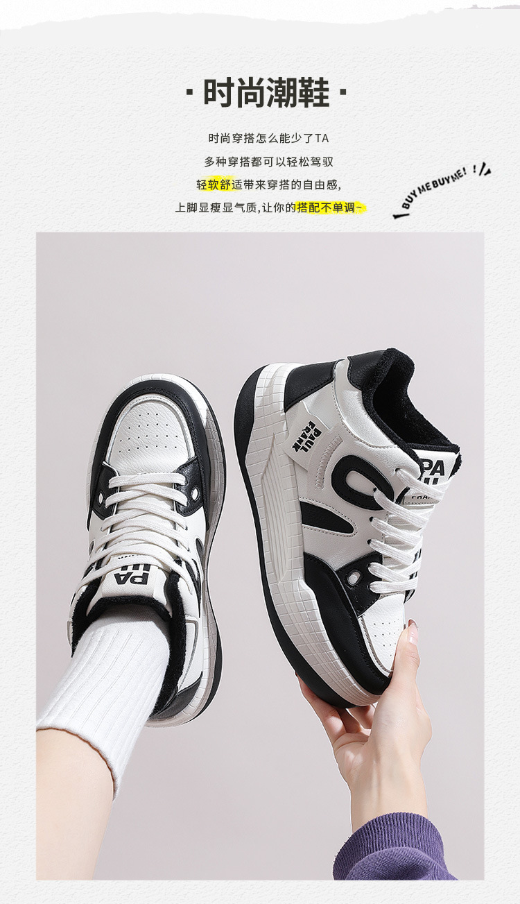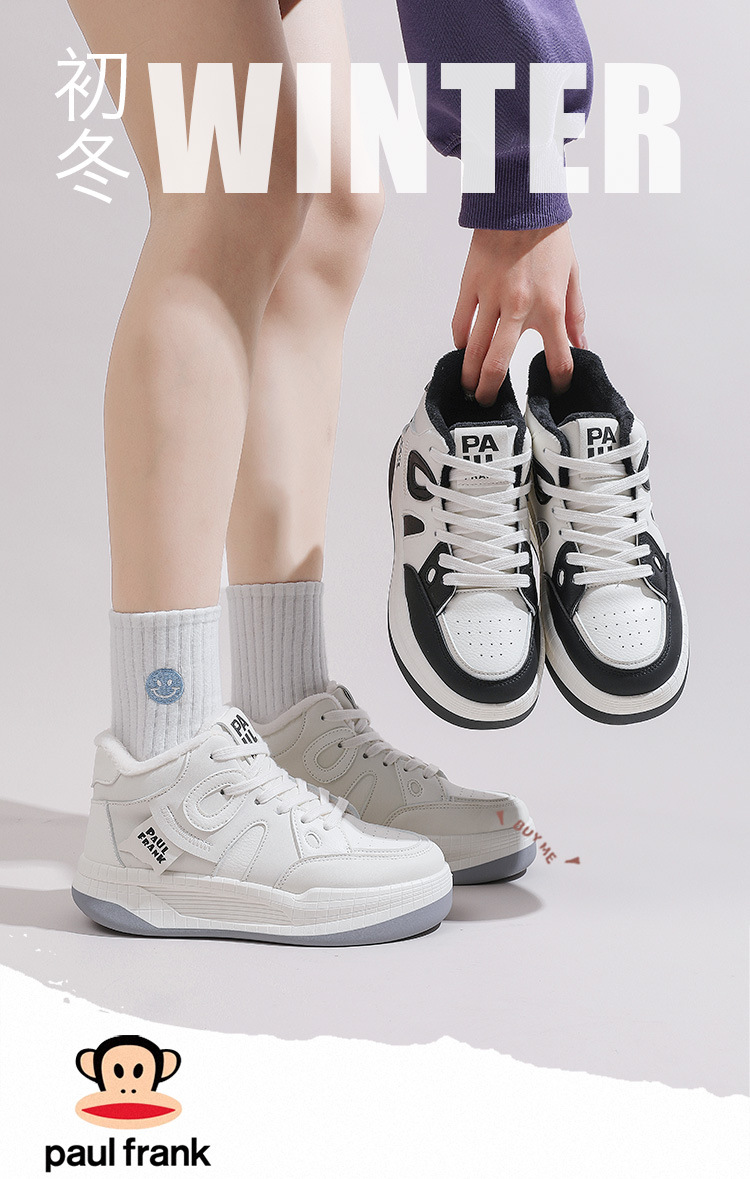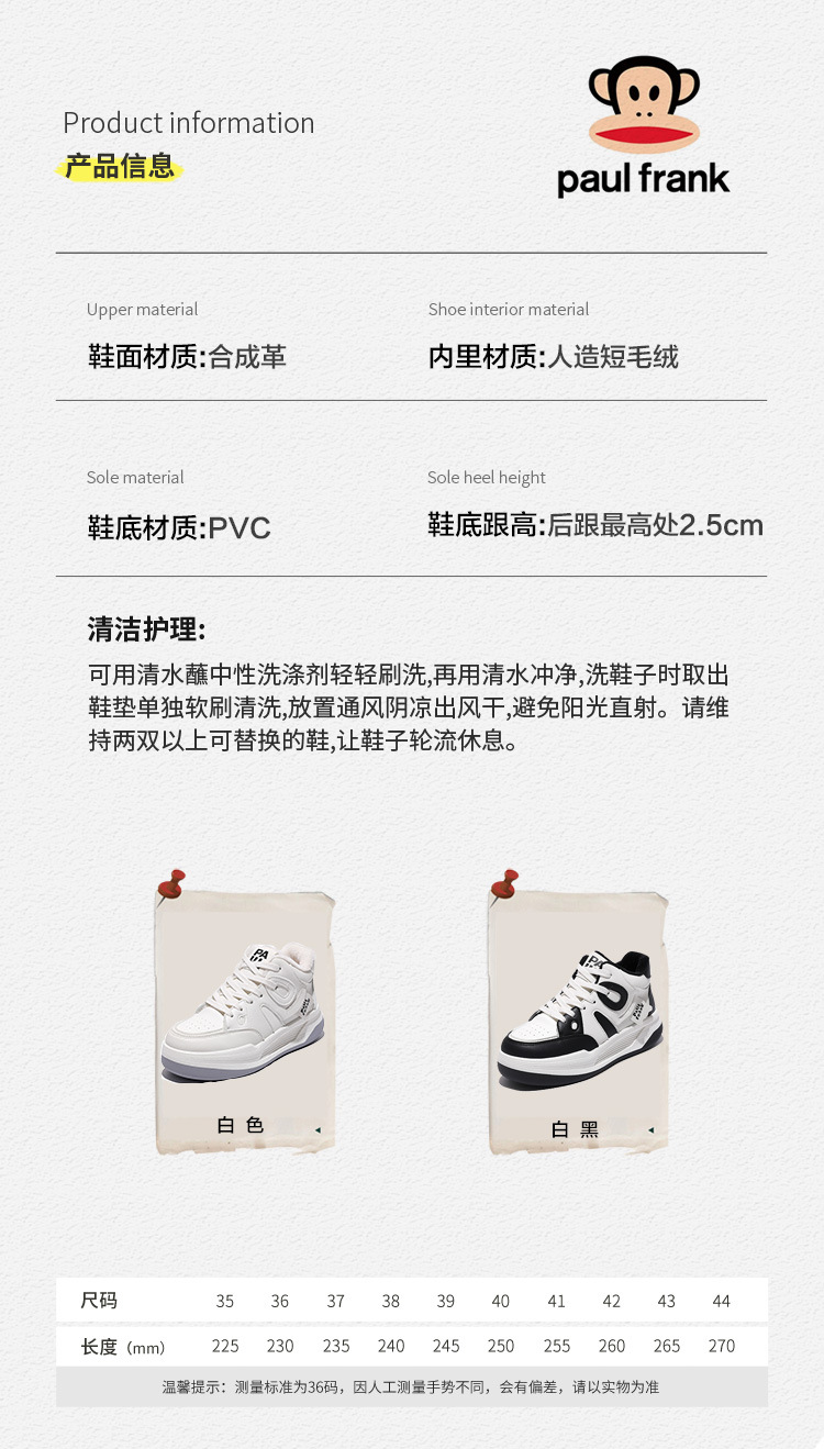 폴 프랭크 (paul frank) 원숭이 하이탑 남녀 구두 흑백 팬더 통굽 흰색 구두 모든 것을 ins 통기화