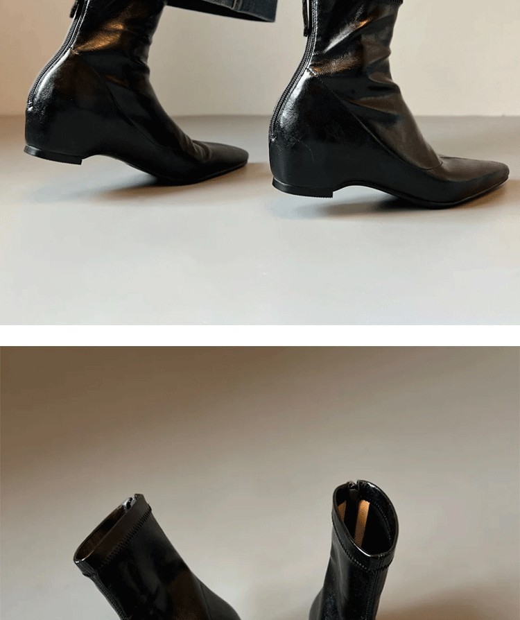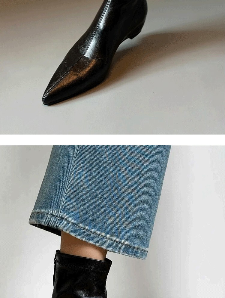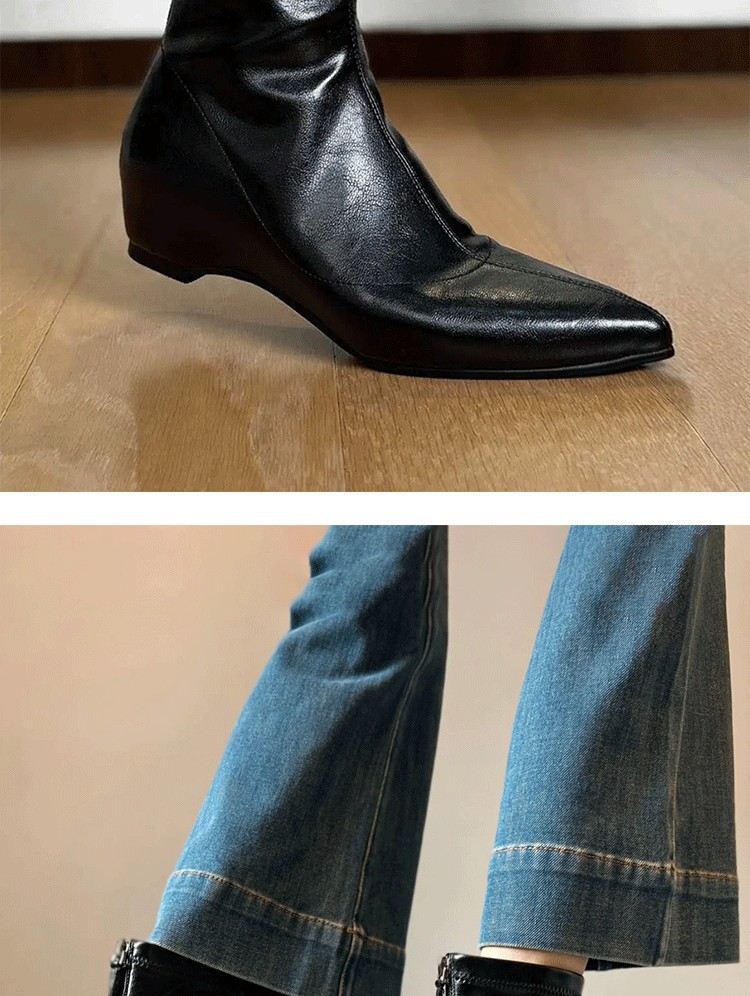 양가죽 프렌치 코 키높이 슬림부츠 여성 2025 와이드 앵글 부츠 진짜 가죽 웨지힐 첼시 부츠
