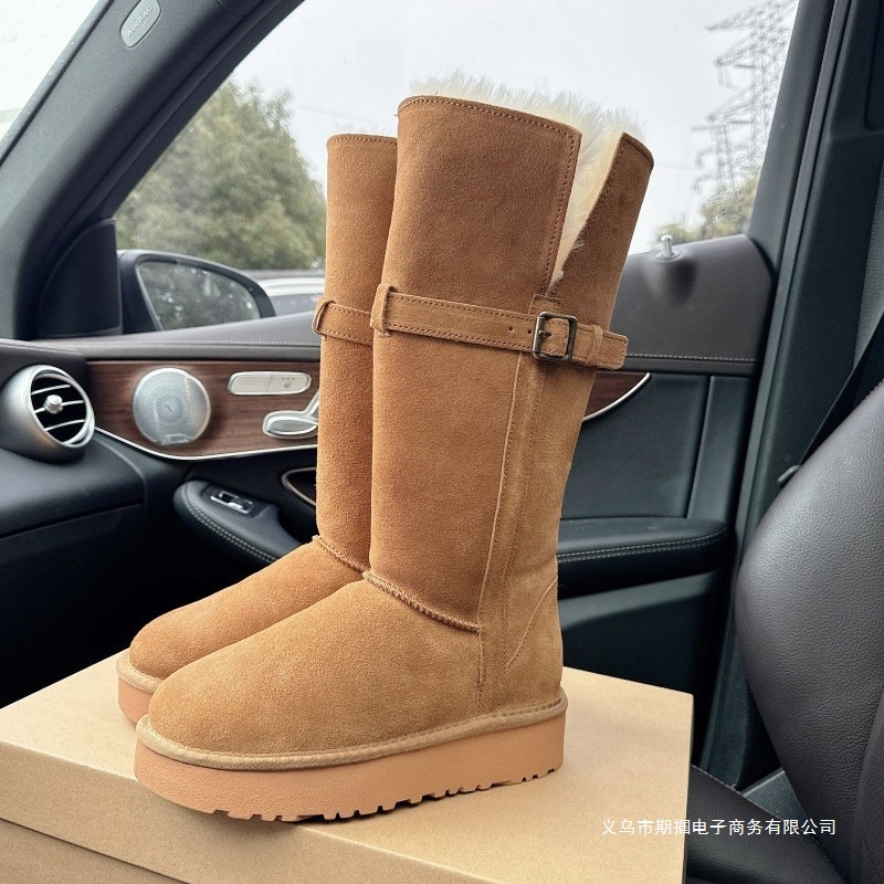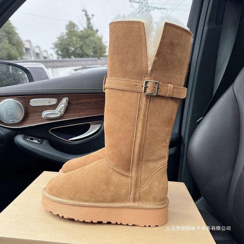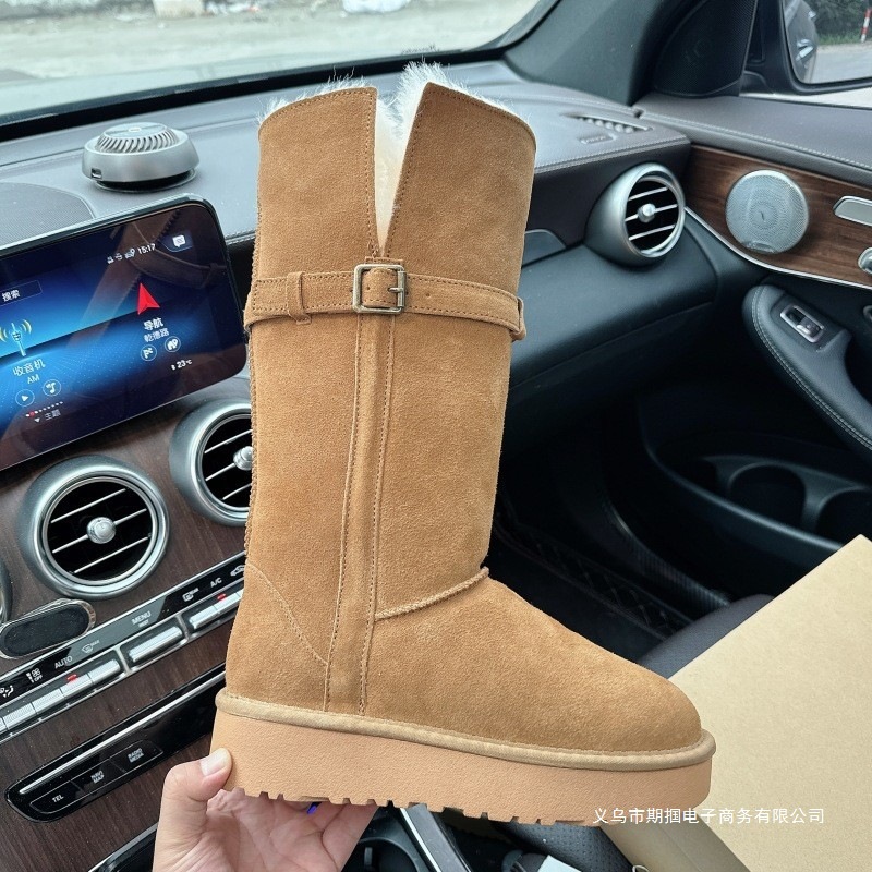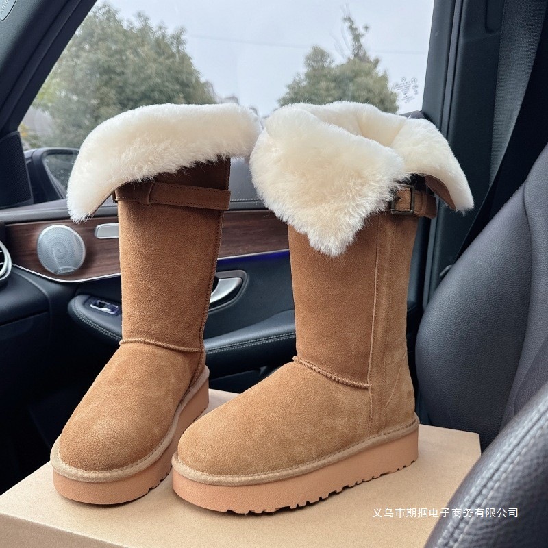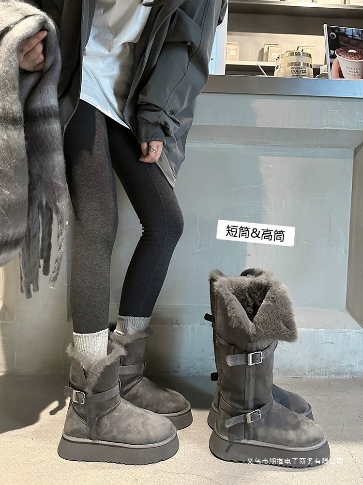 겨울 신상품 도톰한 기모 소가죽 스노우 부츠 2 켤레 여성용 통창으로 날씬해 보이지만 무릎보다 미끄럽지 않고 따뜻해요