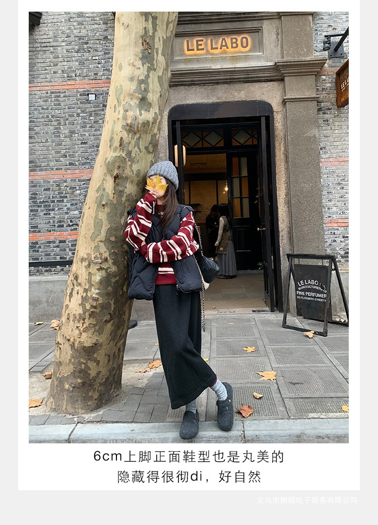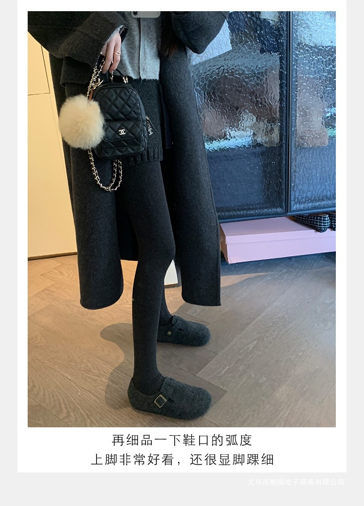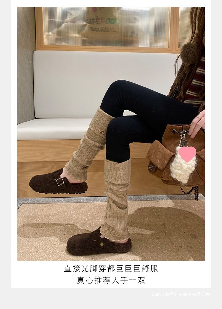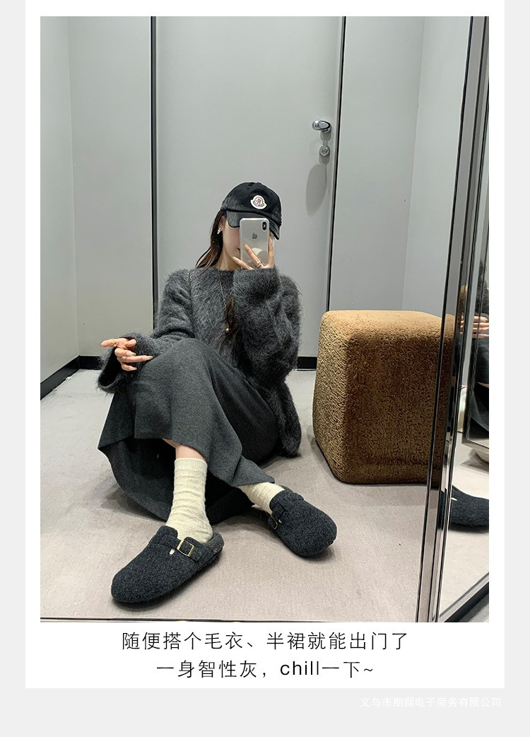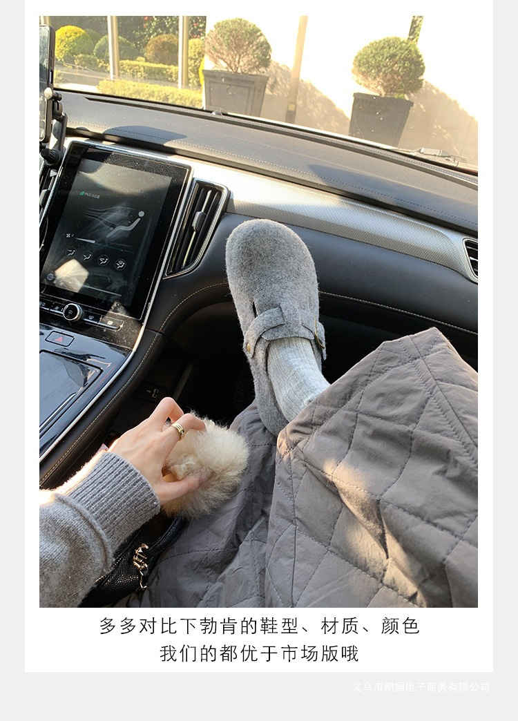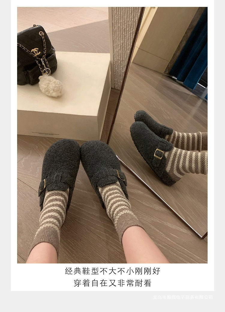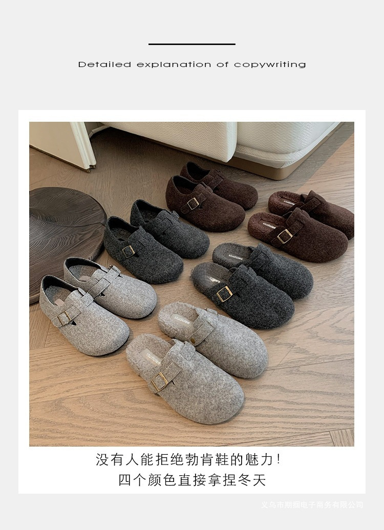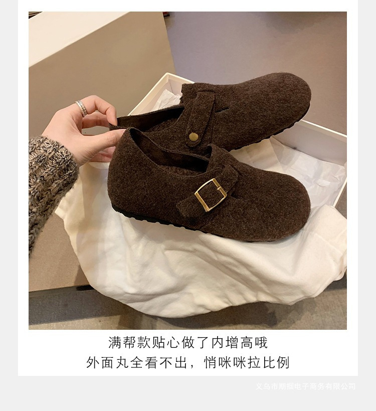 소가죽 퍼 버켄 슈즈 속 키높이 통굽에 기모 보온 슬립온 일자 포켓 슬리퍼 겨울 솜스니커즈