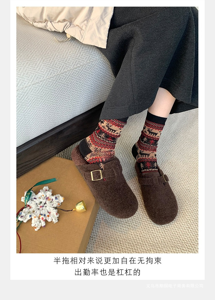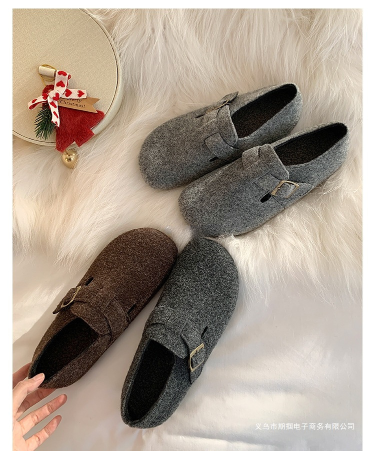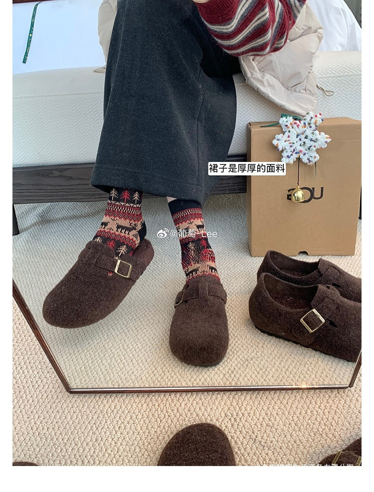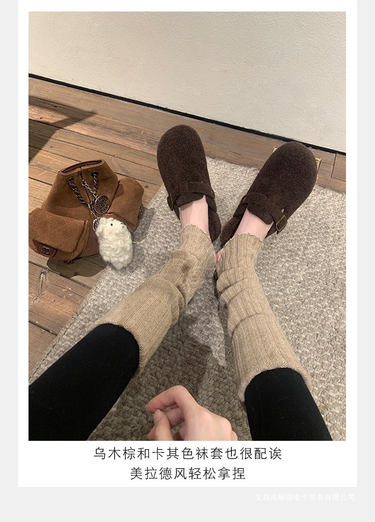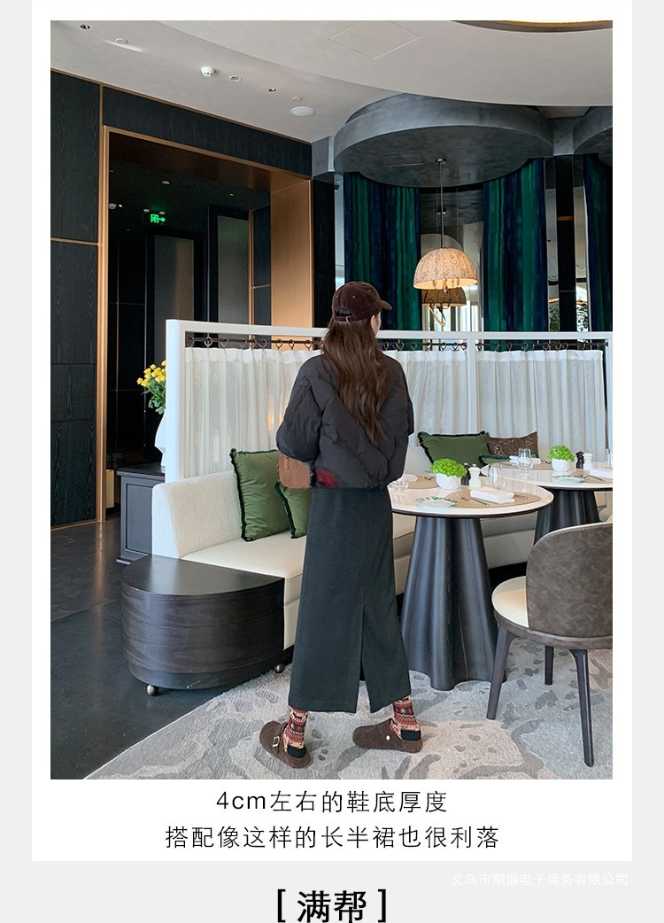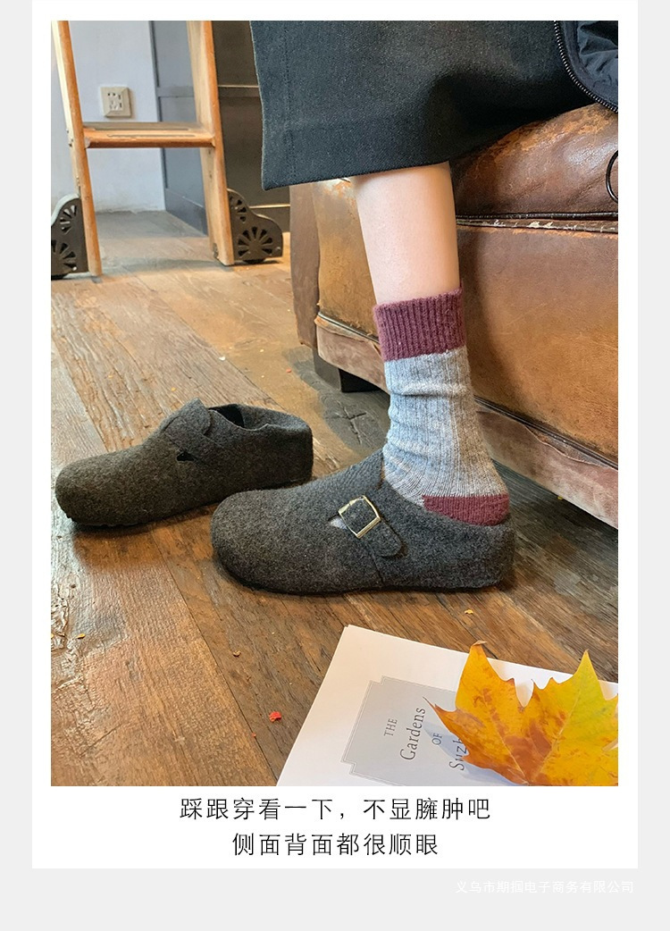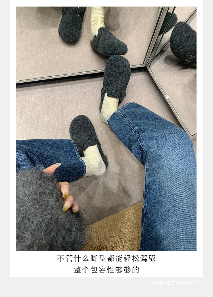 소가죽 퍼 버켄 슈즈 속 키높이 통굽에 기모 보온 슬립온 일자 포켓 슬리퍼 겨울 솜스니커즈