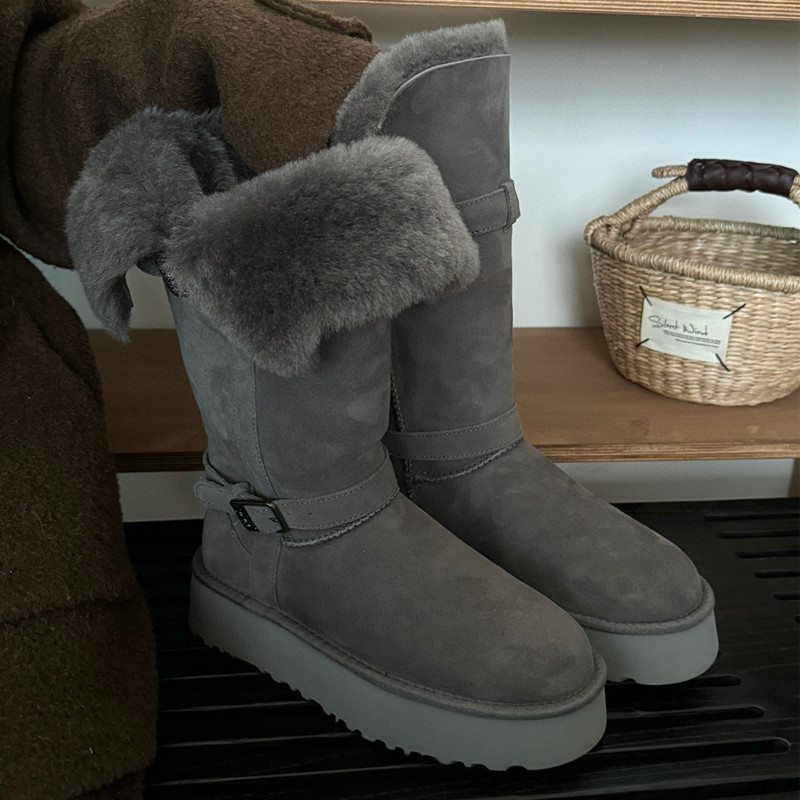 두꺼운 퍼 일체형 스노우 부츠 여성 겨울 보온 신상 스노우 부츠입니다