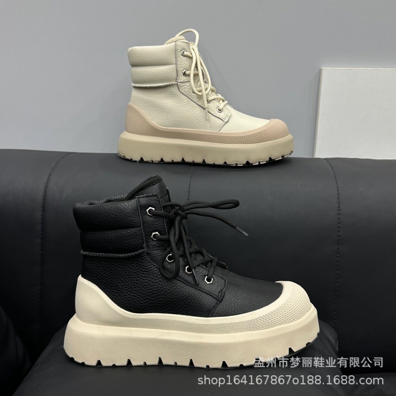스노우 부츠 퍼 일체형 커플 부츠 보온성 두툼한 스트랩 탑 부츠 스니커즈 슈즈