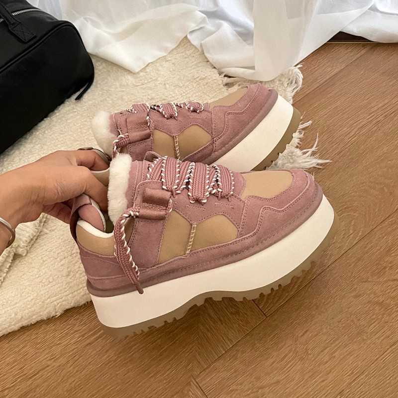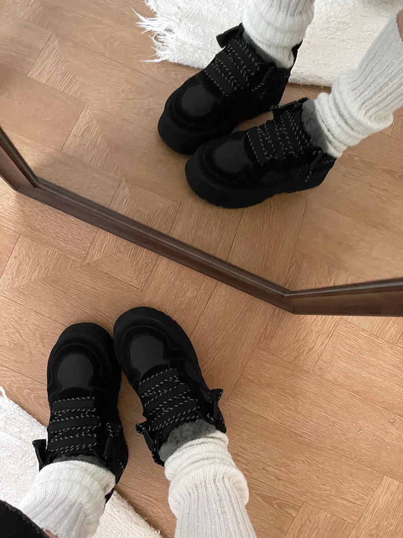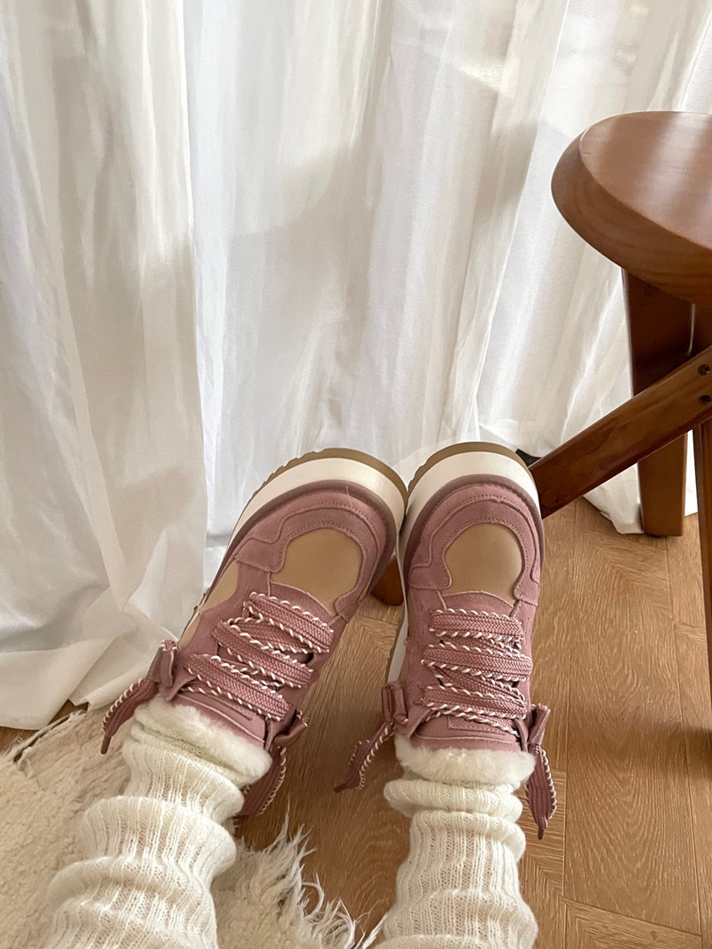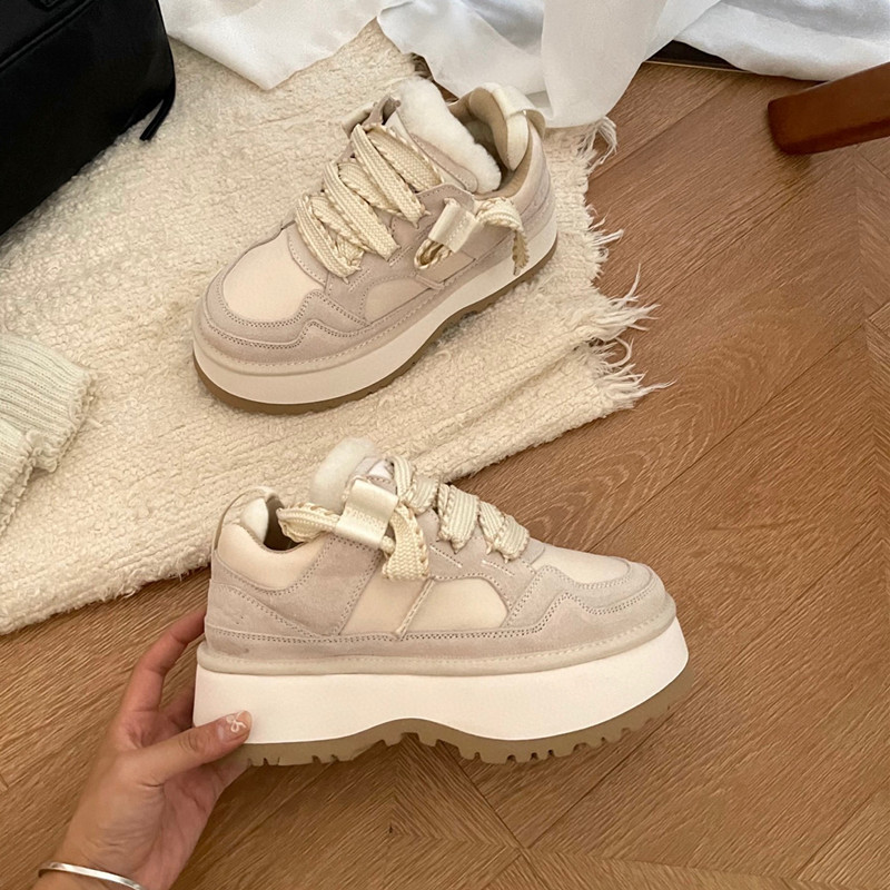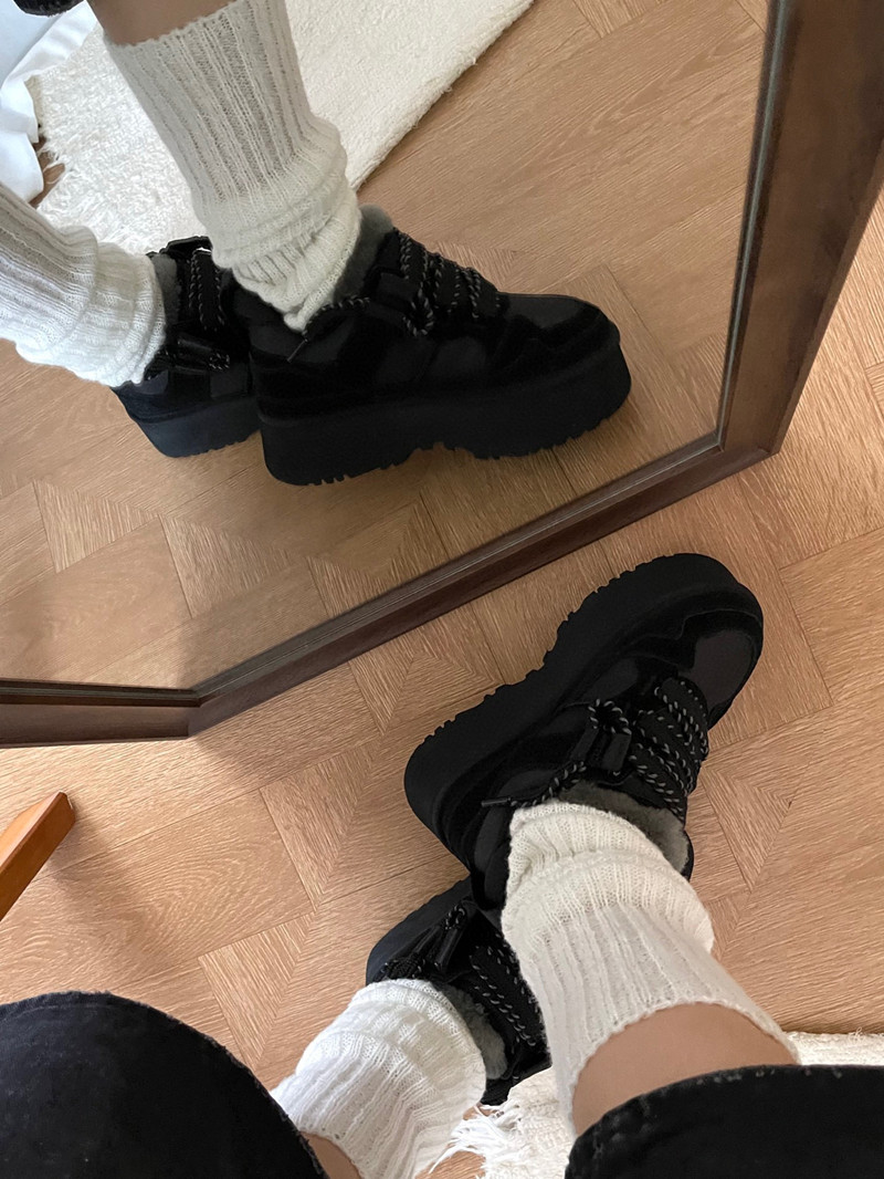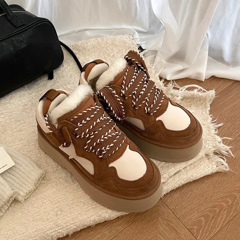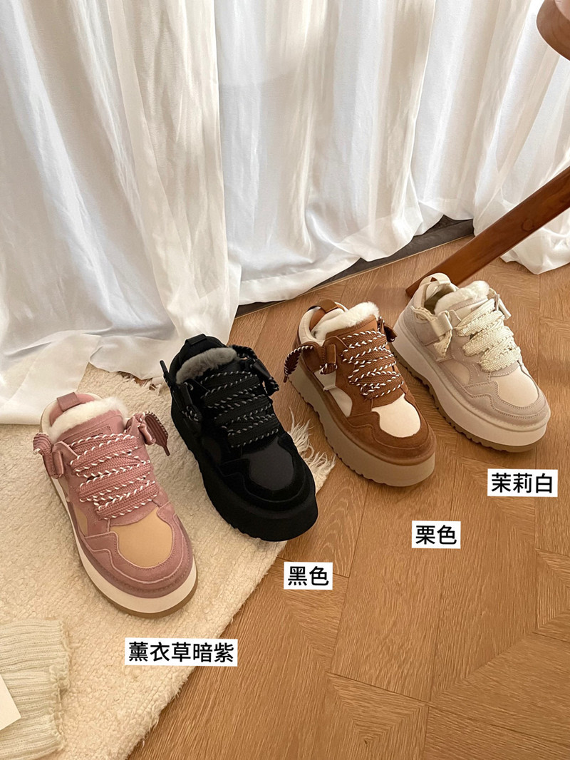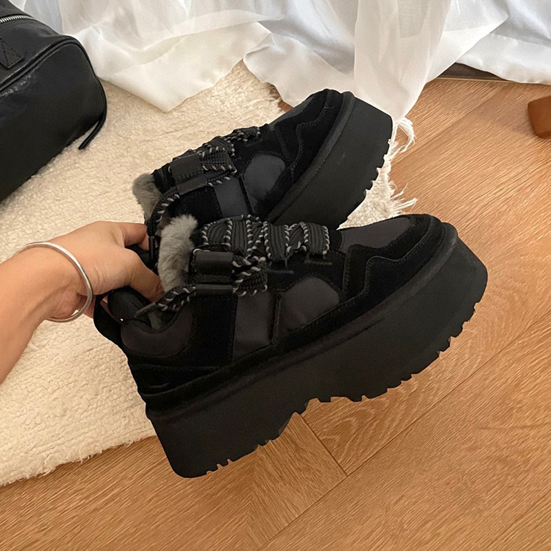 스노우 부츠 여성용 양털 일체형 스트랩 키높이 여성용 부츠 송편 바닥이 두꺼워져 따뜻합니다