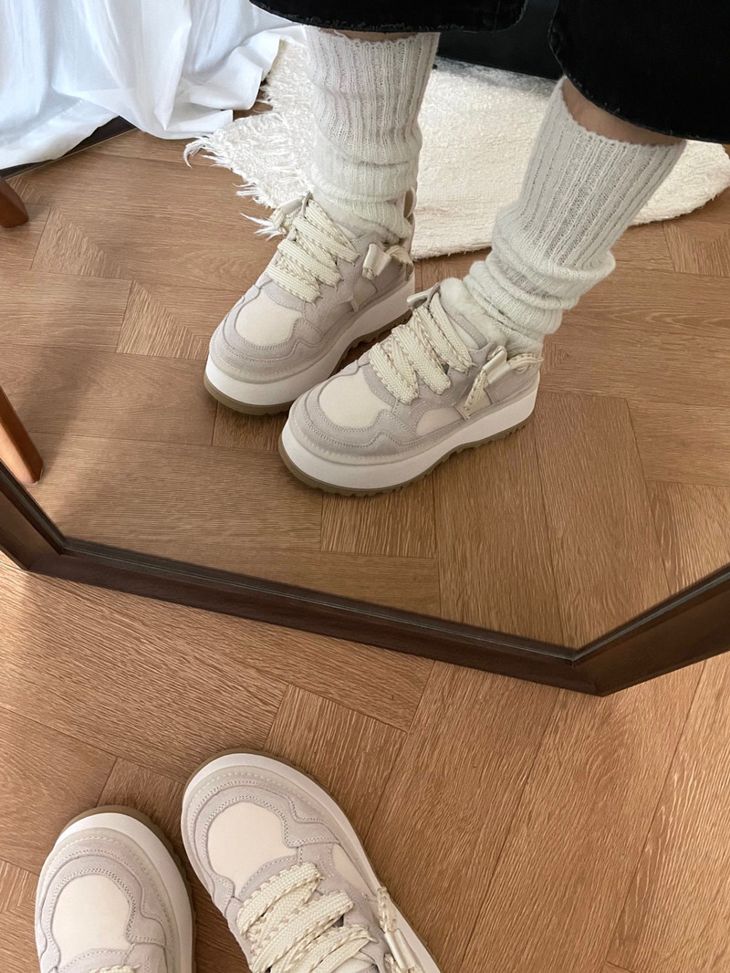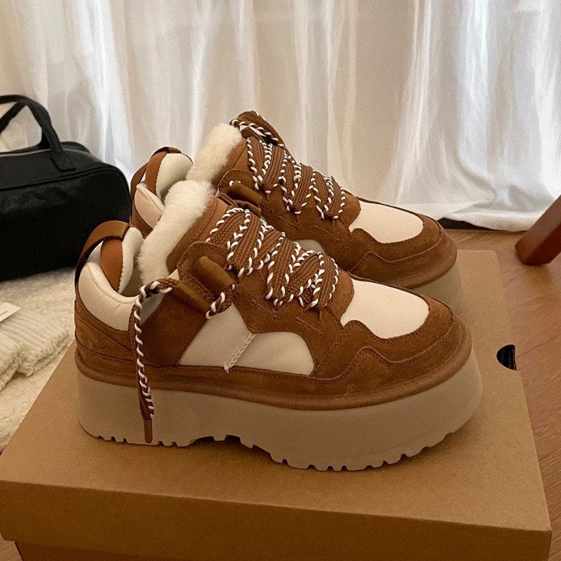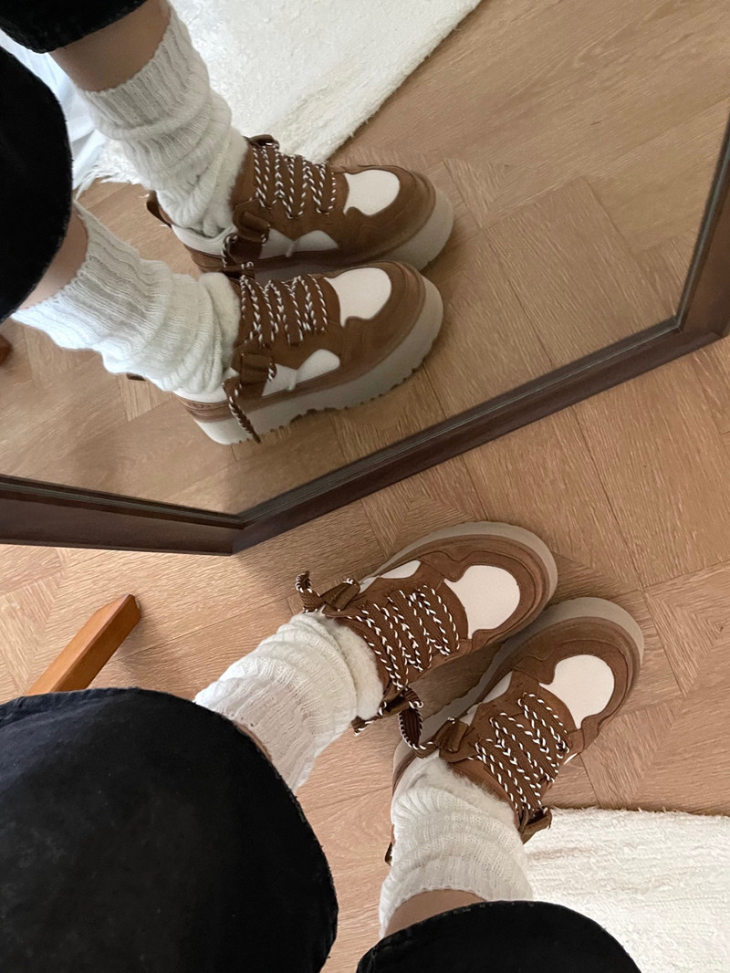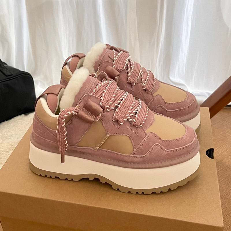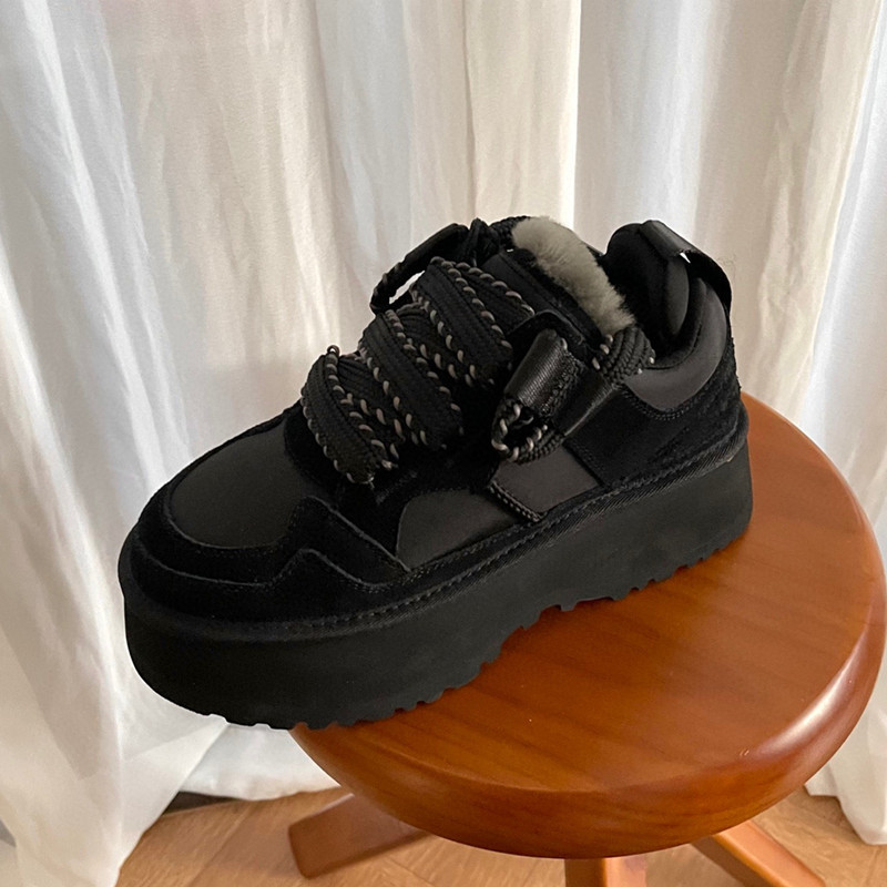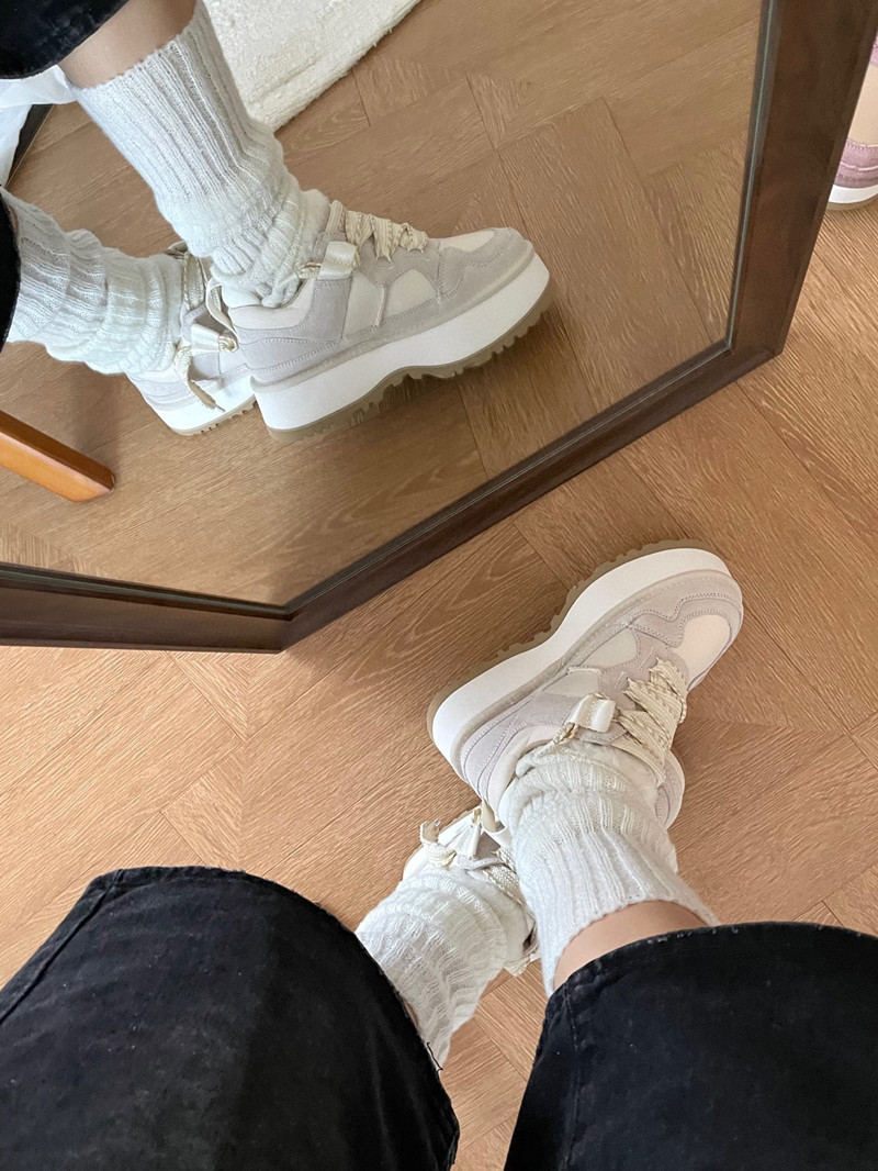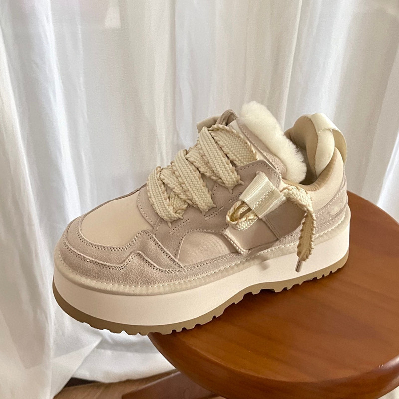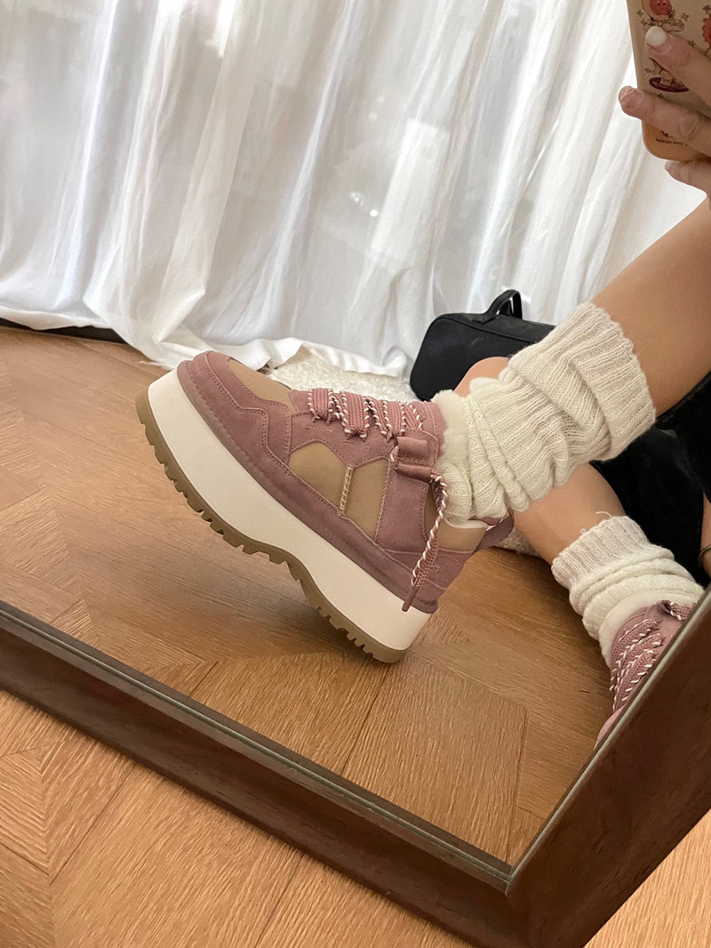 스노우 부츠 여성용 양털 일체형 스트랩 키높이 여성용 부츠 송편 바닥이 두꺼워져 따뜻합니다