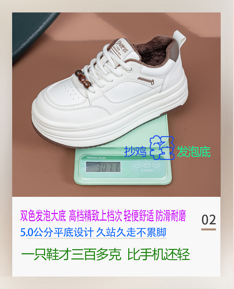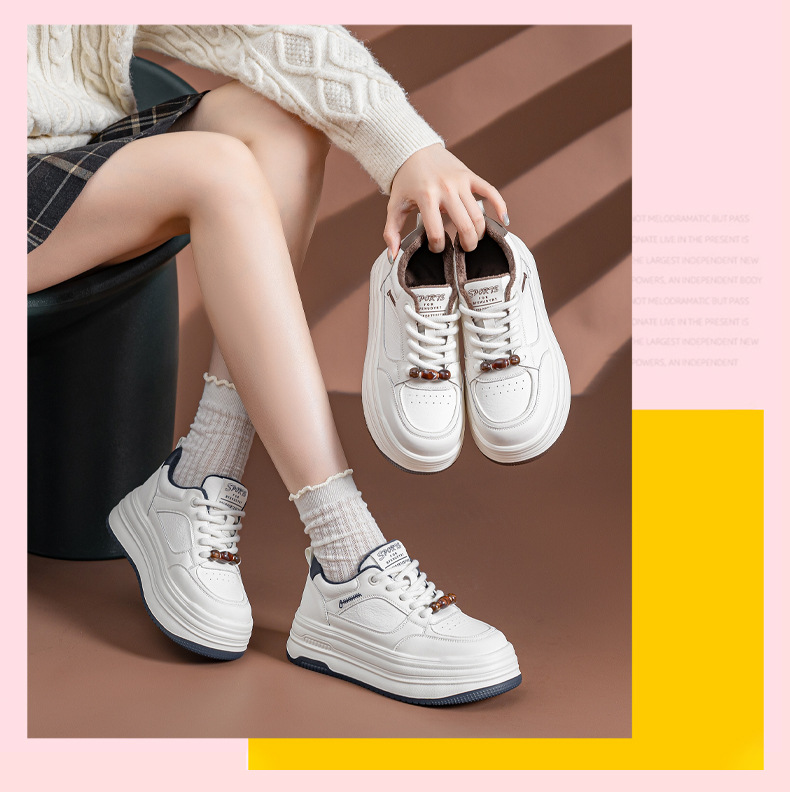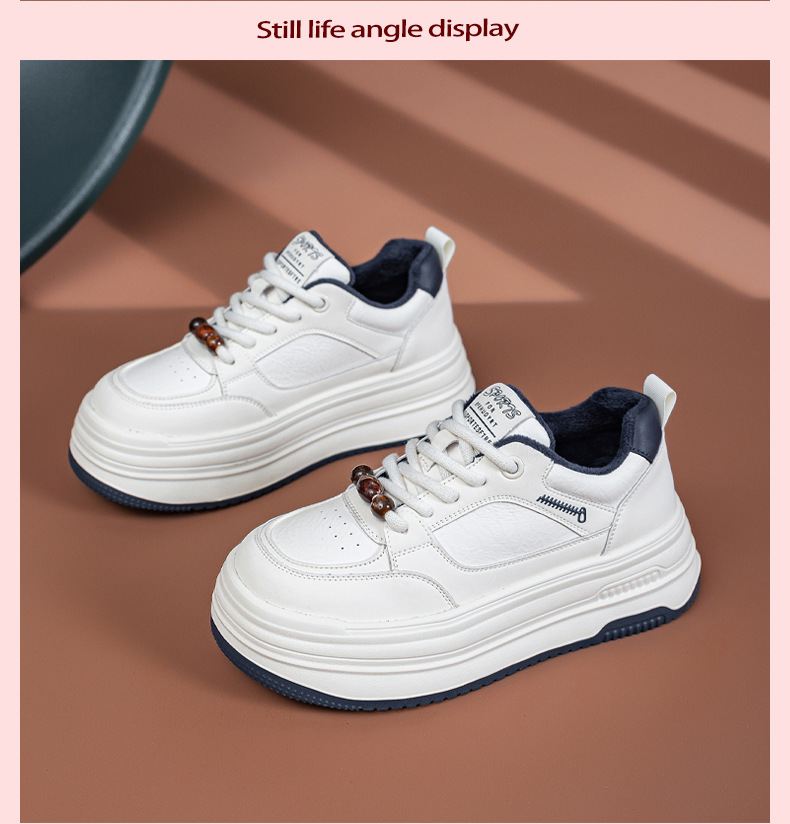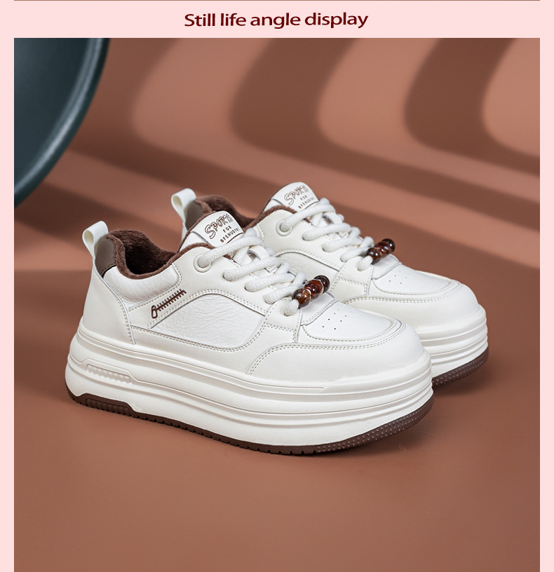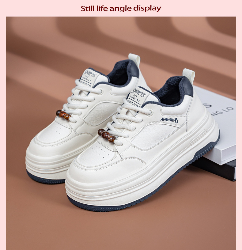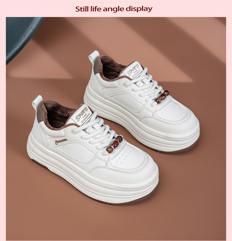 가을 겨울 통굽 흰 구두 여성용 벨벳 쿠션 편안한 플랫 스니커즈 여성화 여성용 큰 사이즈 여성화