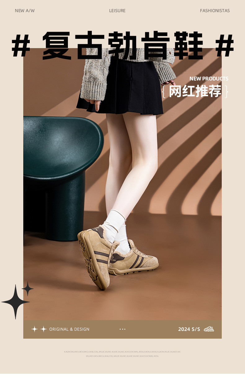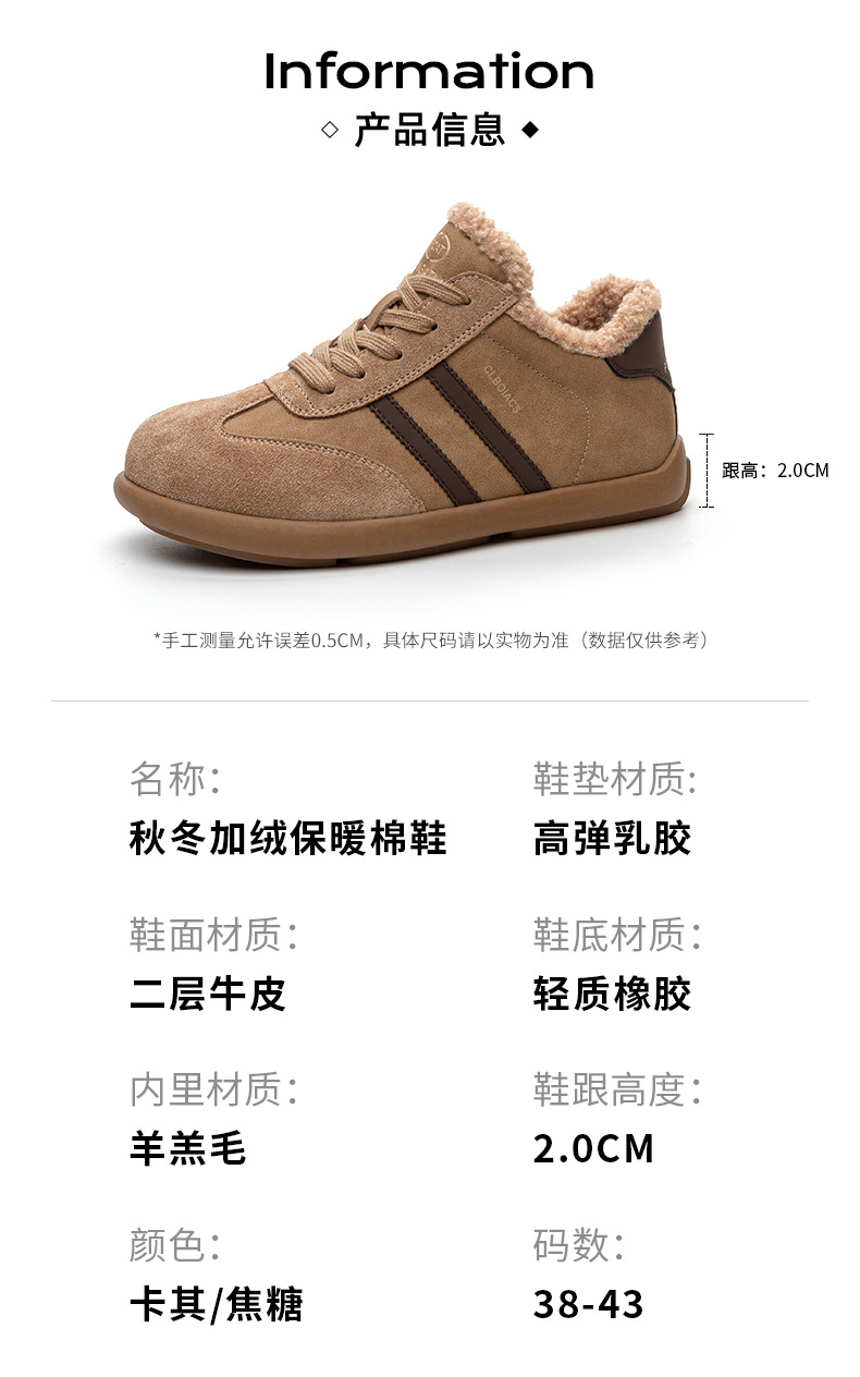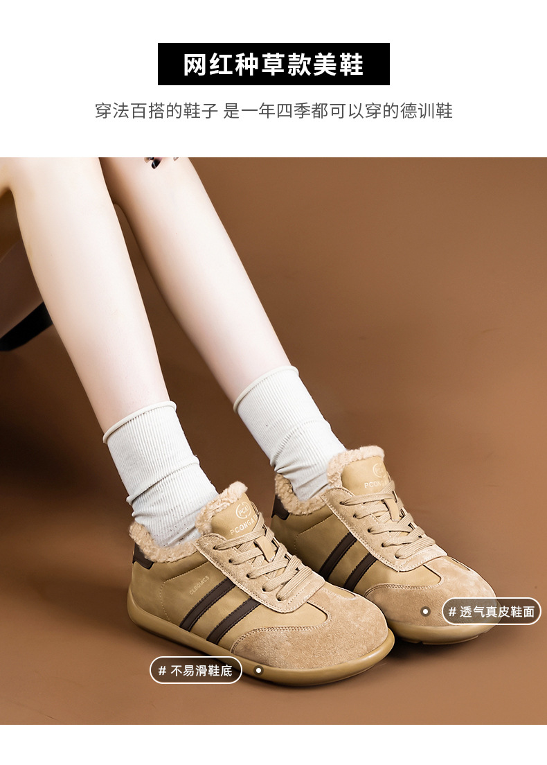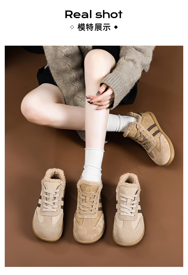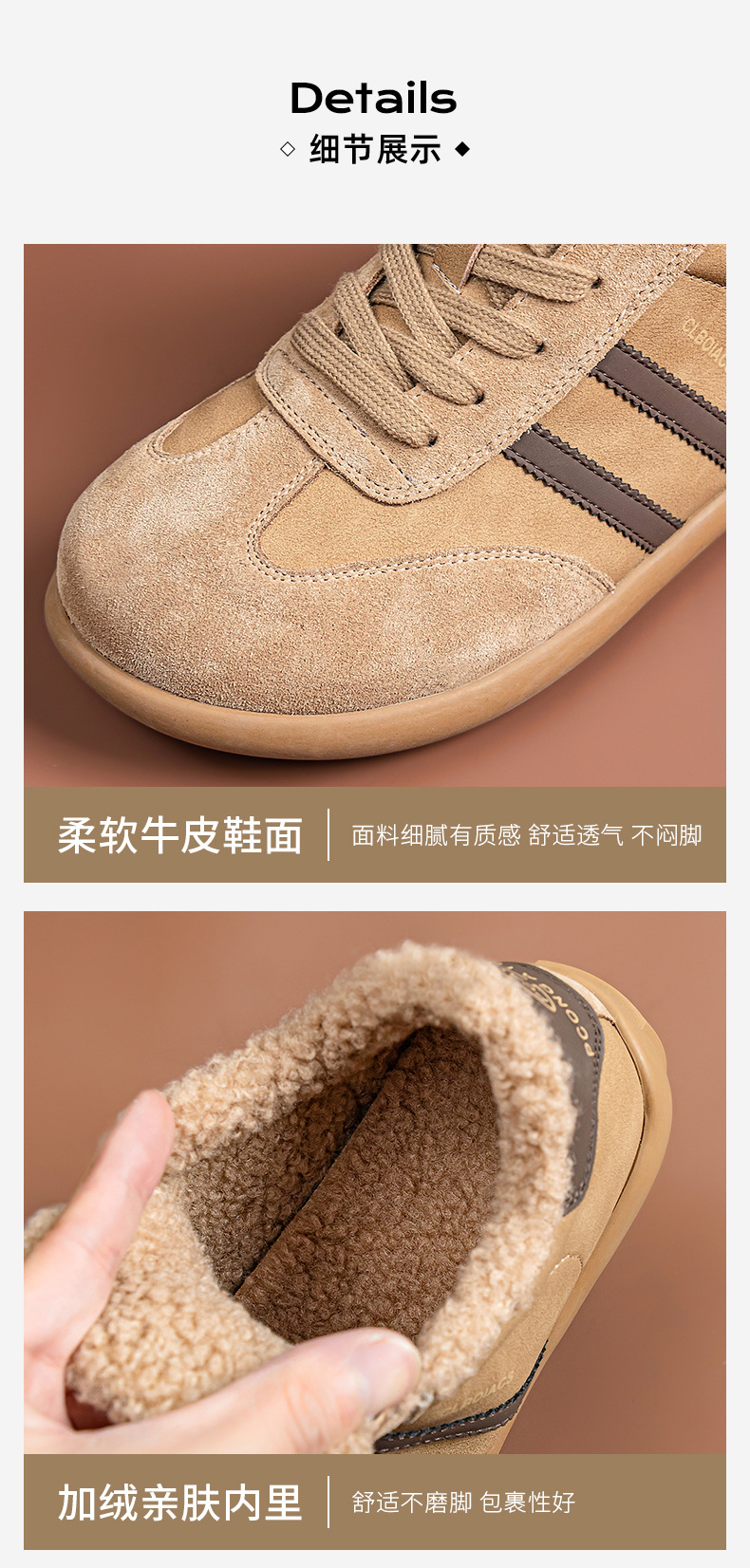 겨울 기모 복고 스웨이드 조훈화 두툼하고 따뜻하고 부드러운 바닥 피곤하지 않으며 슬립온 여성화 라지 4143