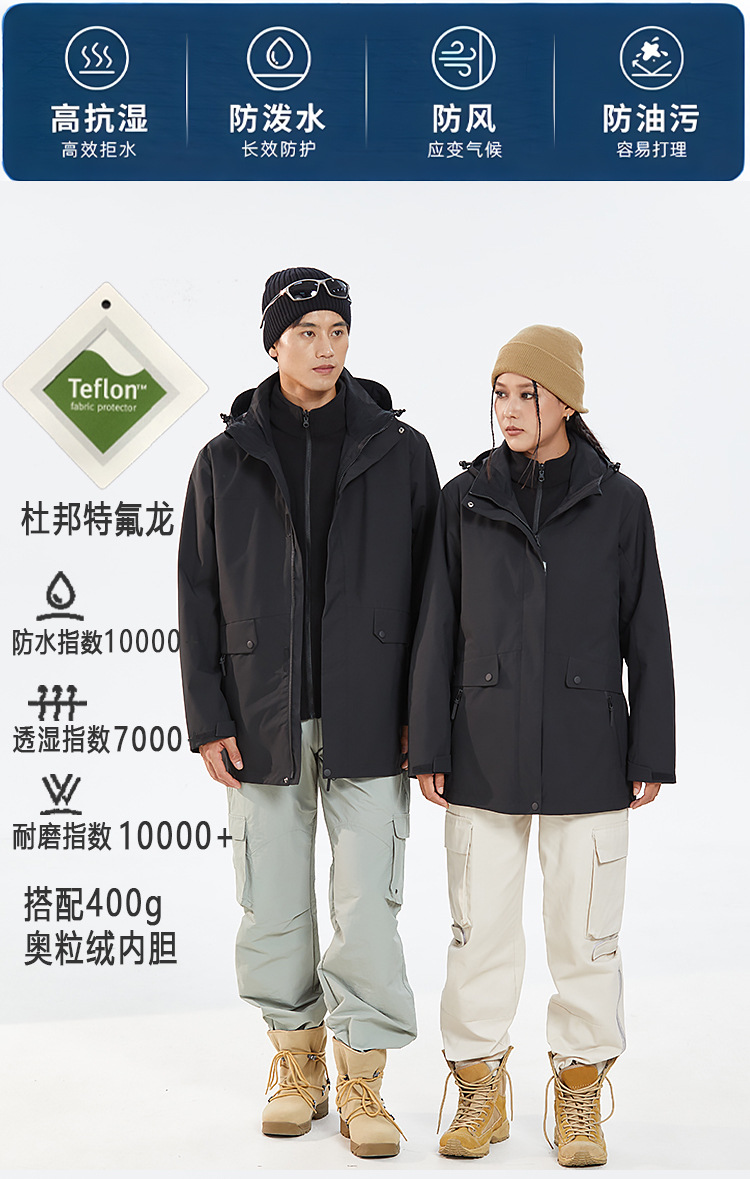 바람막이복 롱 기장의 3 피스 남녀 테플론 3 피스 등산복
